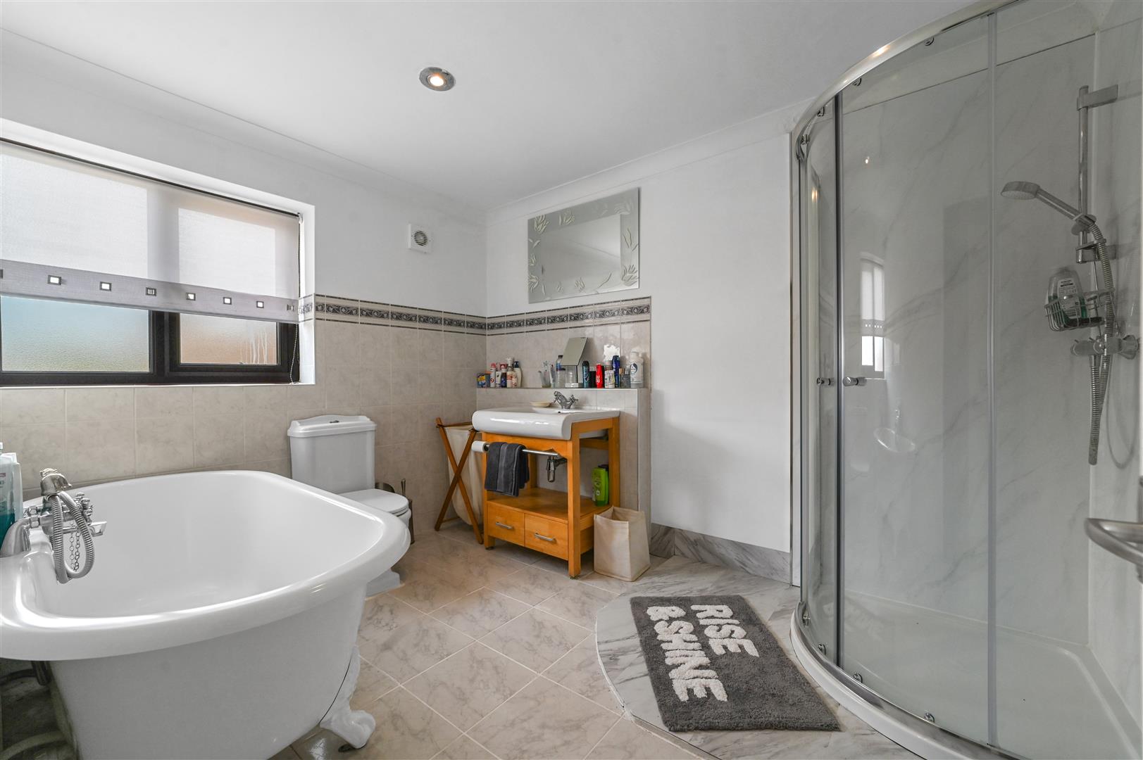 Upstairs, four generously-sized bedrooms await, with the main bedroom boasting a luxurious en-suite with both a free-standing bath and a separate shower, as well as a walk-in wardrobe. The family bathroom serves the remaining bedrooms, offering both bath and shower facilities. Bedroom four leads to a cleverly converted loft, providing an additional bedroom or adaptable study space-perfect for growing families or visiting guests.