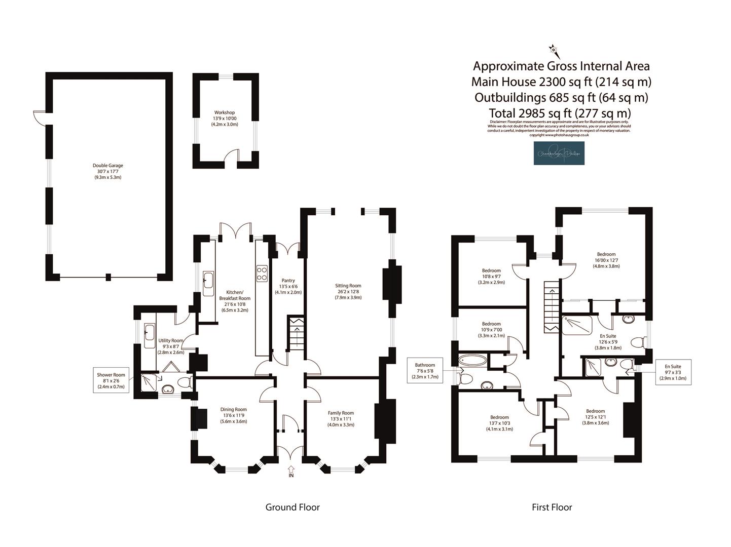 Upstairs, the first-floor landing reveals five generously proportioned bedrooms, with the principal suite offering built-in wardrobes and en-suite. A second en-suite bedroom and a family bathroom cater to the rest of the family with elegance and ease.