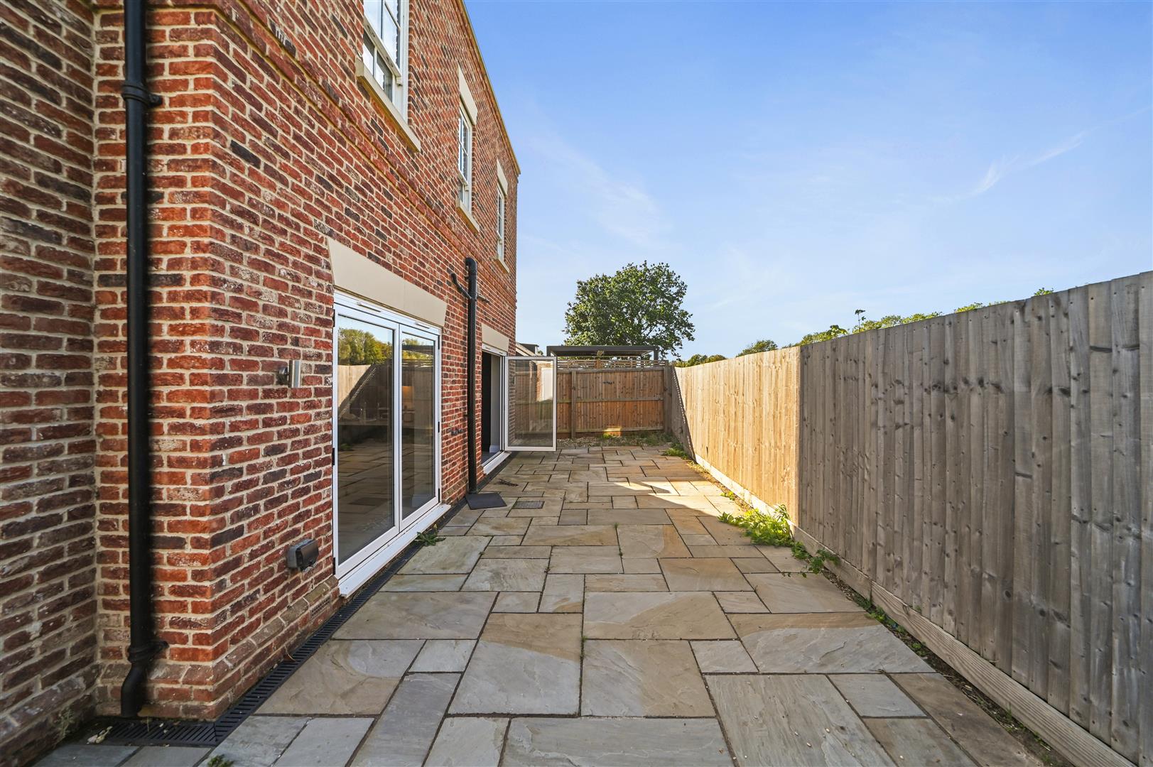Upstairs, the principal bedroom includes built-in wardrobes and a contemporary en suite shower room. Two further double bedrooms, a comfortable single bedroom, and a well-appointed family bathroom provide flexible space for families or visiting guests.