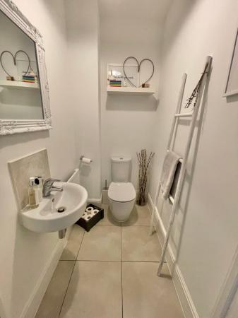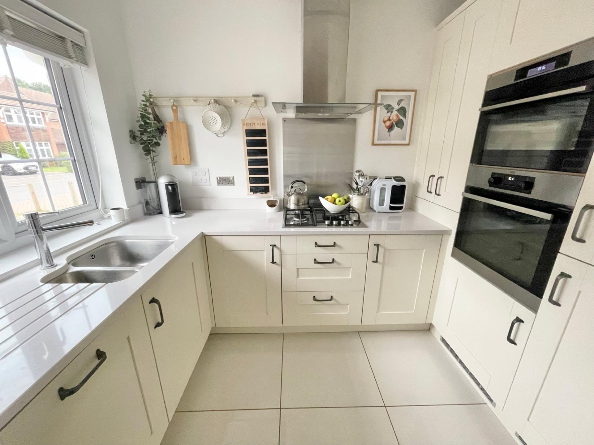 The light and airy accommodation comprises a front aspect kitchen with quartz work surfaces & a matching range of eye and low level units & integrated appliances including a dishwasher, waist height oven with separate grill, four ring gas hob with extractor hood above, fridge/freezer in addition to space and plumbing for a washing machine in a utility cupboard in the hallway. To the rear of the property is the living space with uPVC double glazed French Doors leading out to the rear garden. The cloakroom with WC and wall mounted wash basin are accessed via the hallway.