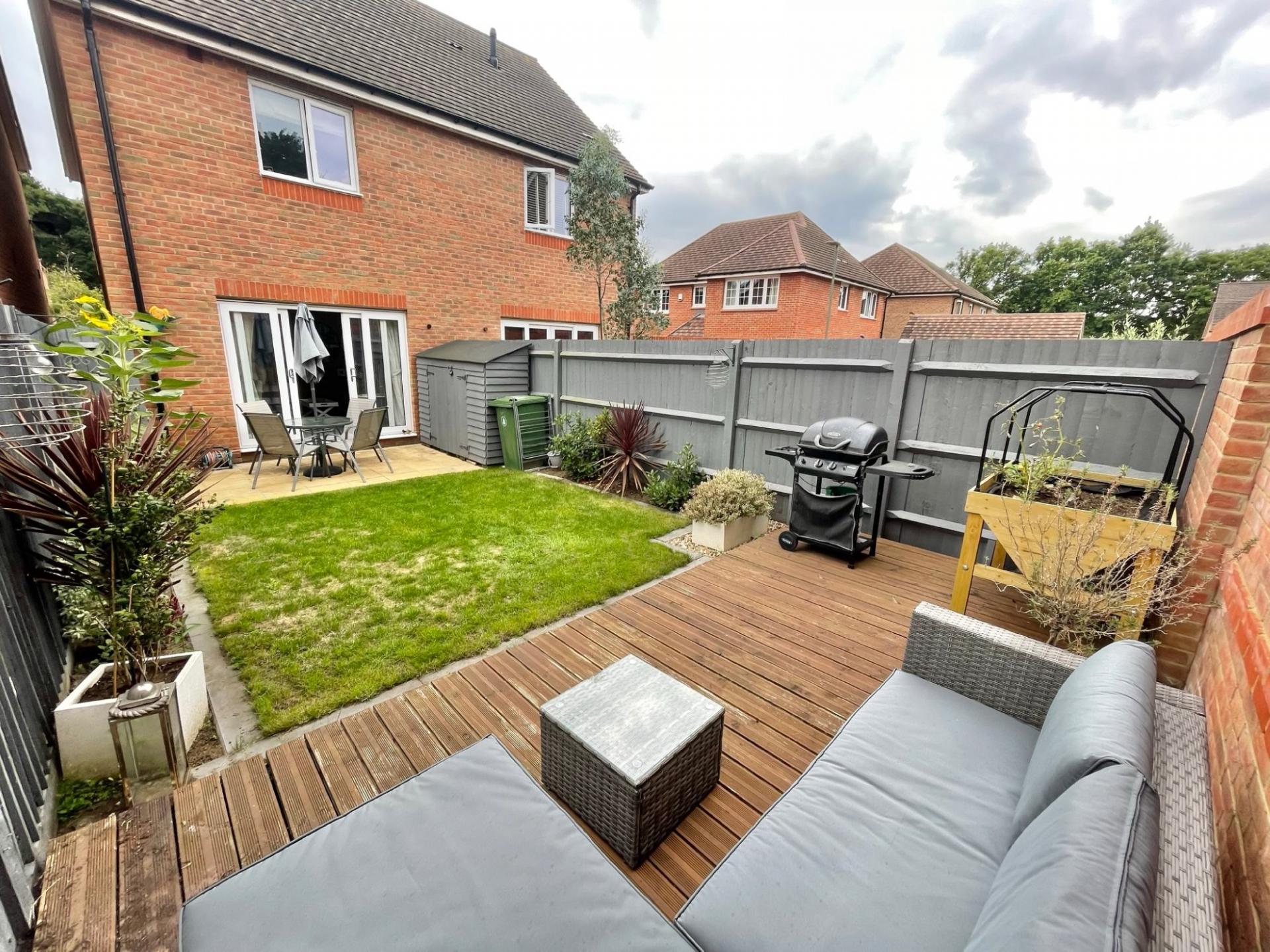 The rear garden features a patio to the rear of the property leading to the lawn with a decked area at the bottom of the garden. To the front of the property is a driveway providing off street parking.