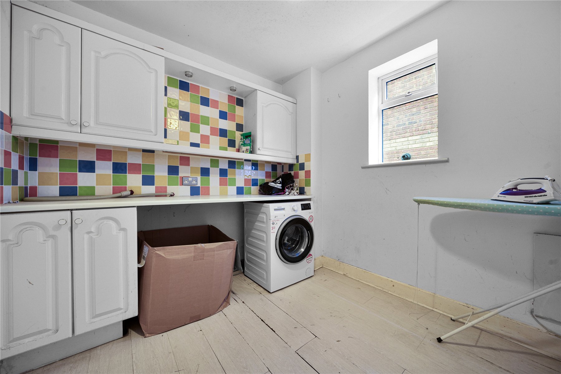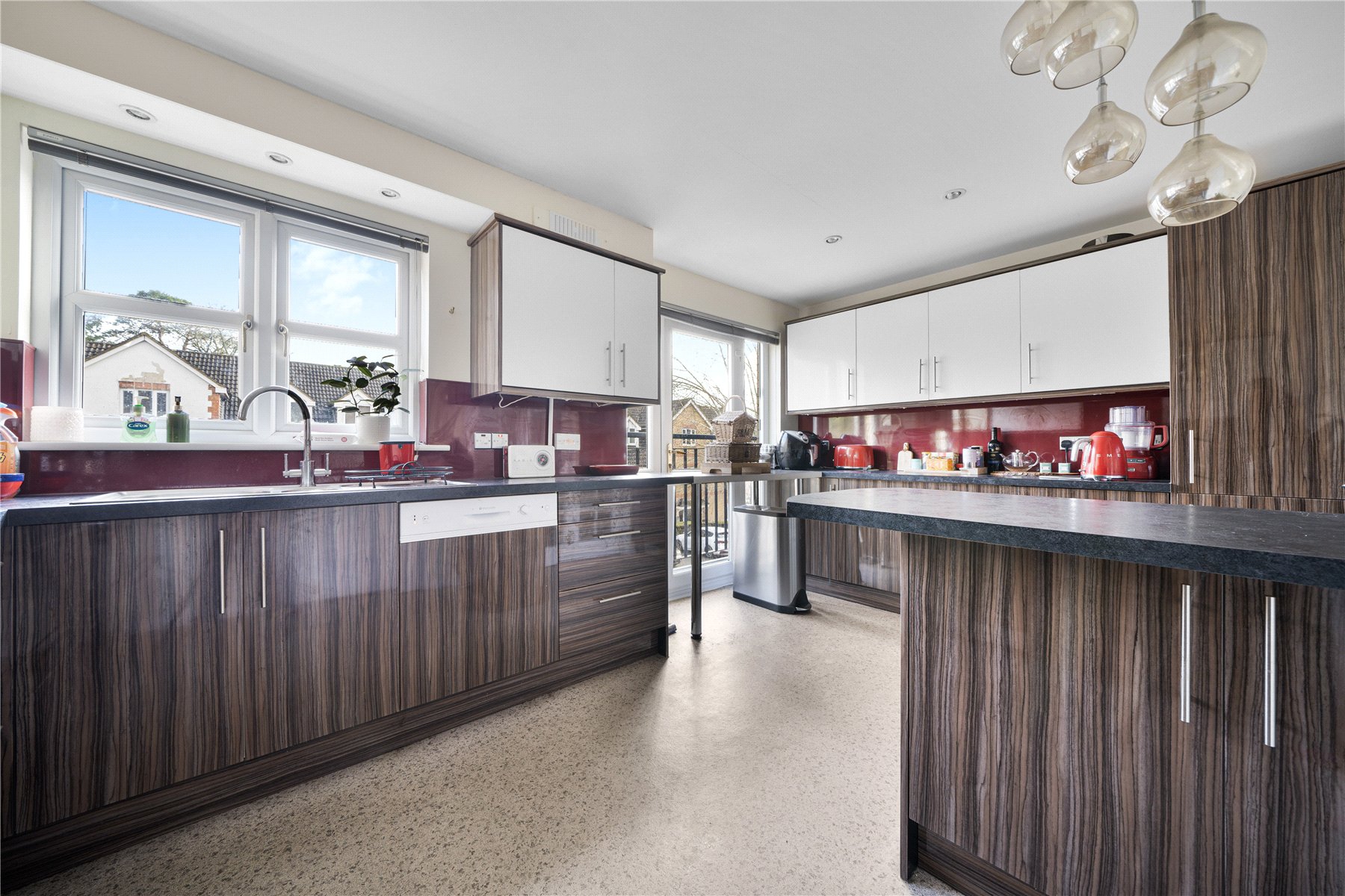 The first floor features a spacious living/dining room, filled with natural light and enhanced by a Juliette balcony. Double doors lead through to the kitchen, which also benefits from its own Juliette balcony and is fitted with an extensive range of base and eye level units, providing ample storage and preparation space.