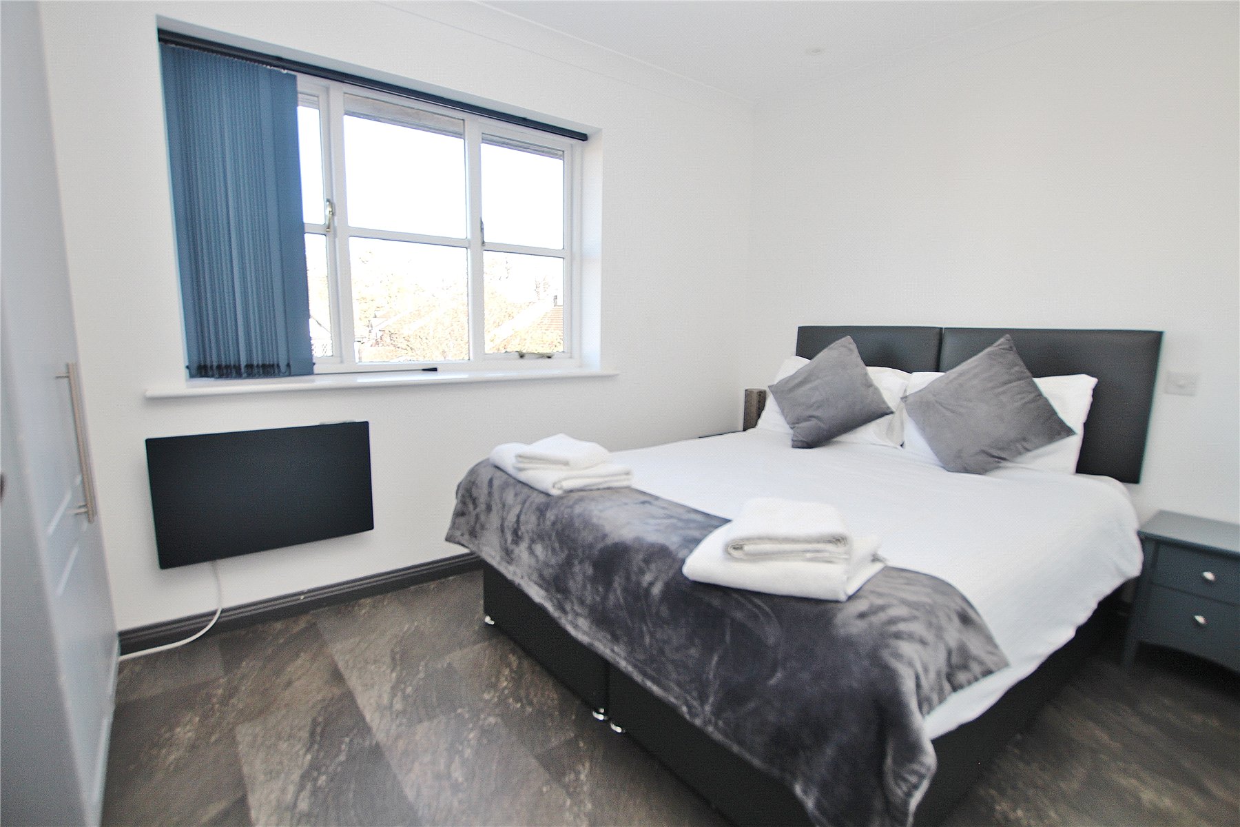 The accommodation comprises two generous double bedrooms and a modern family bathroom, fitted with a wash hand basin, WC and bath with wall mounted shower, all complemented by stylish floor to ceiling tiling.