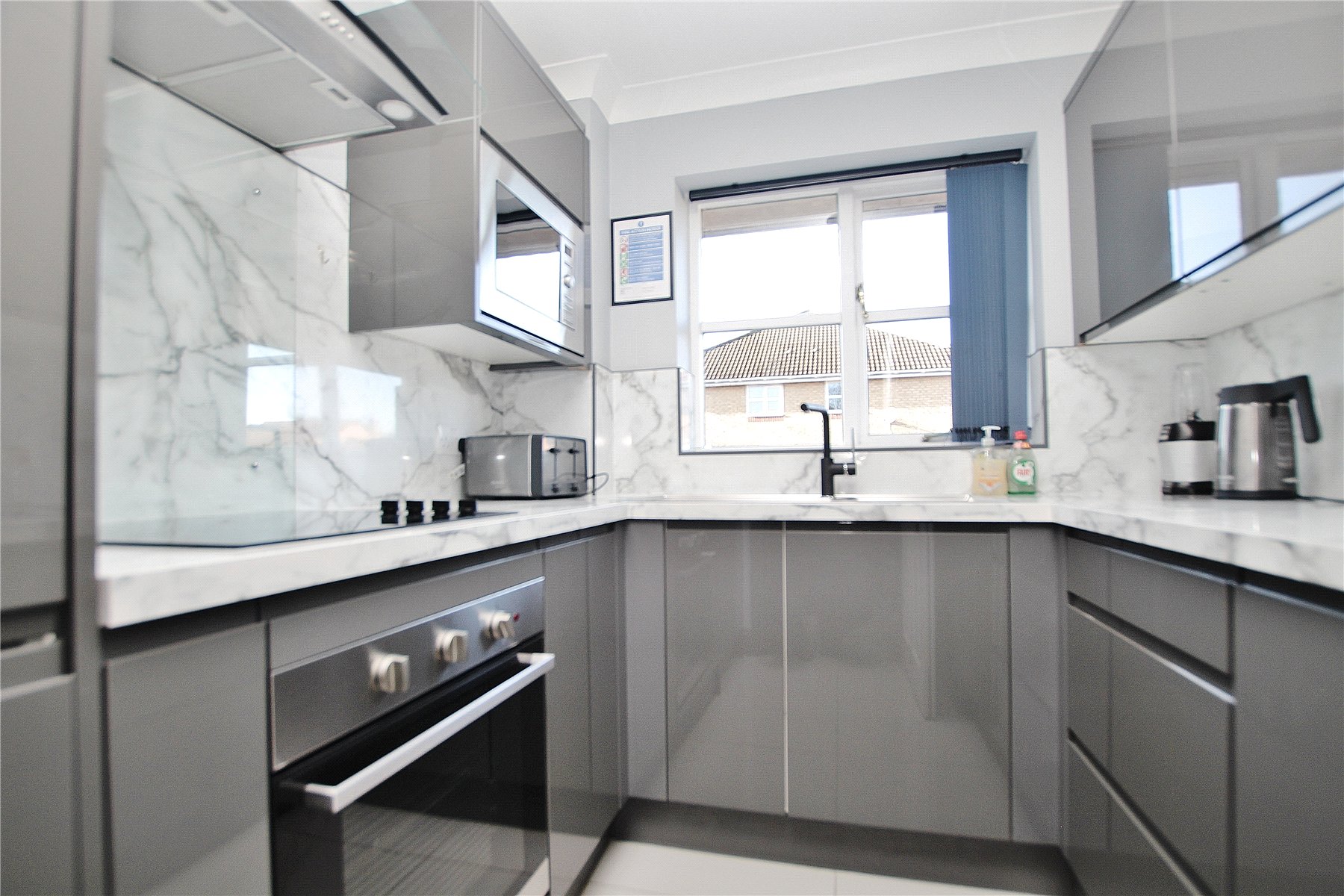 A bright lounge/dining room provides an inviting living space and enjoys a Juliette balcony that brings in plenty of natural light. The adjoining kitchen has been fitted with a contemporary range of high gloss base and eye level units, along with a selection of integrated appliances.