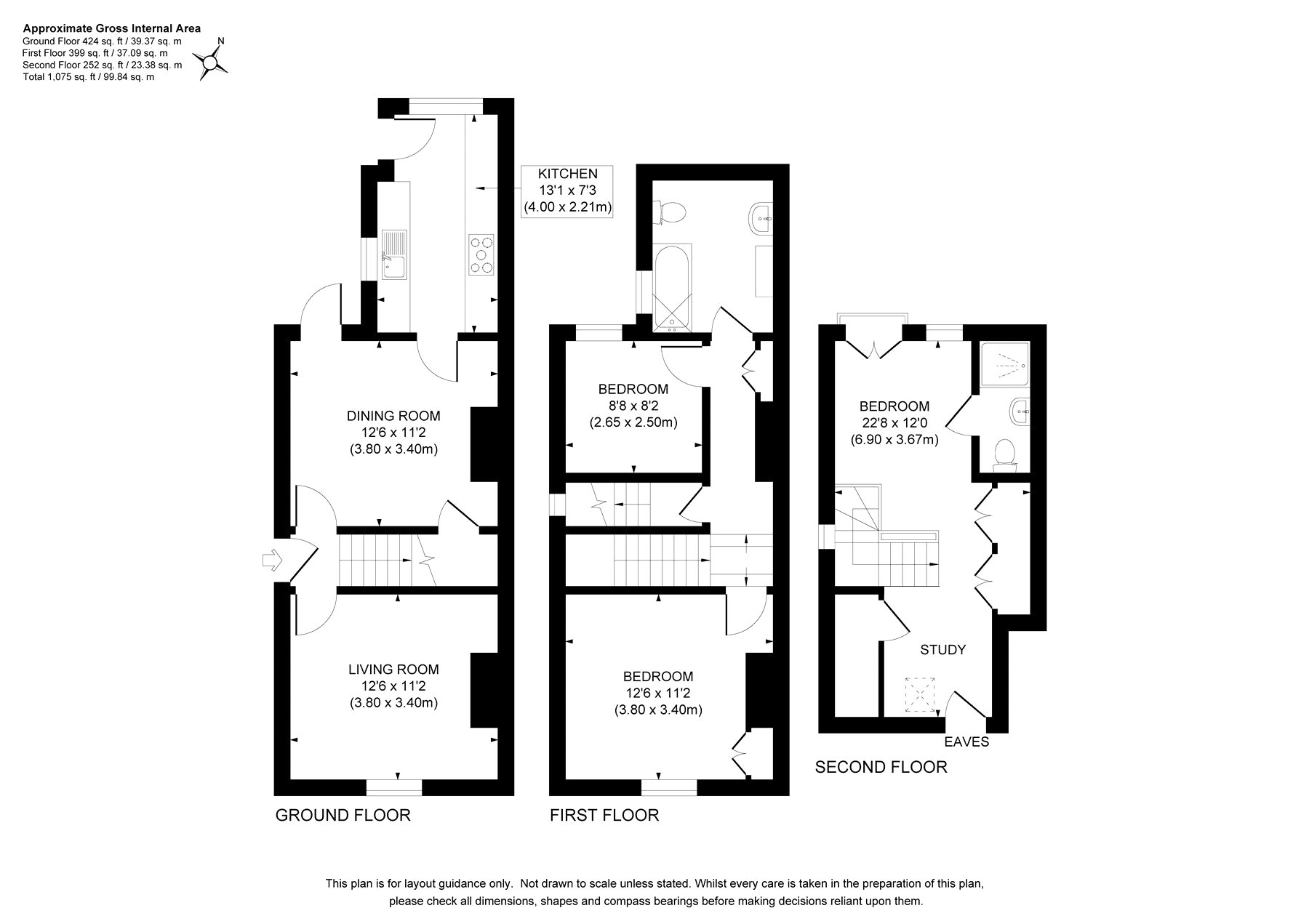 The property is presented in excellent order throughout and retains a number of attractive character features. The accommodation includes three well-proportioned double bedrooms arranged over the upper floors. Two bedrooms are located on the first floor and are served by a spacious family bathroom fitted with a bath and wall mounted shower, wash hand basin and WC. Stairs lead to the second floor where a further double bedroom can be found, complete with its own ensuite shower room.