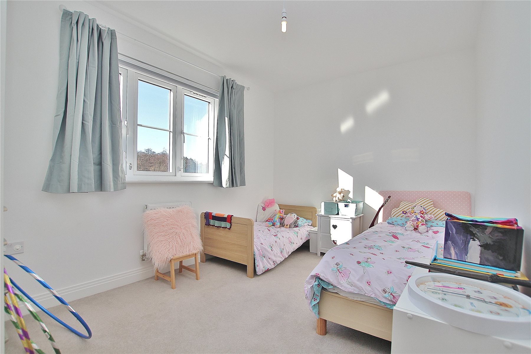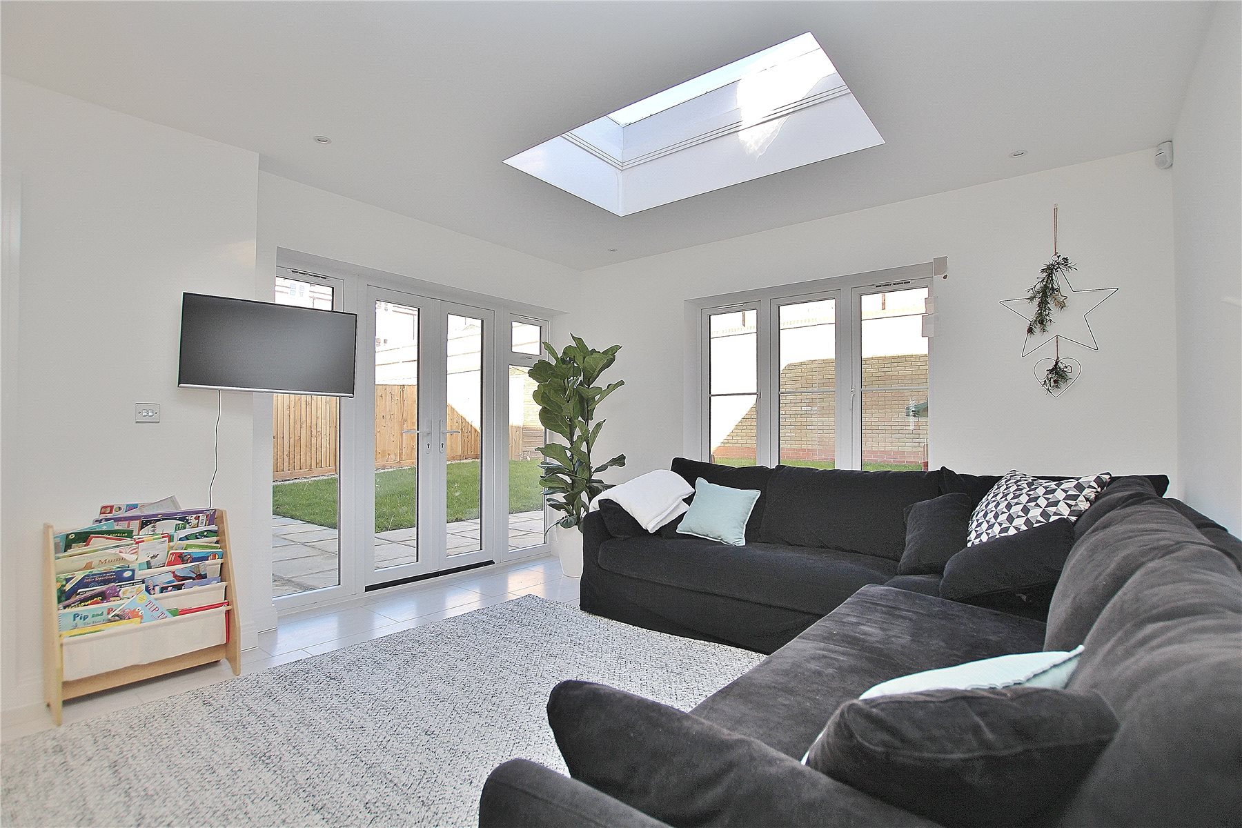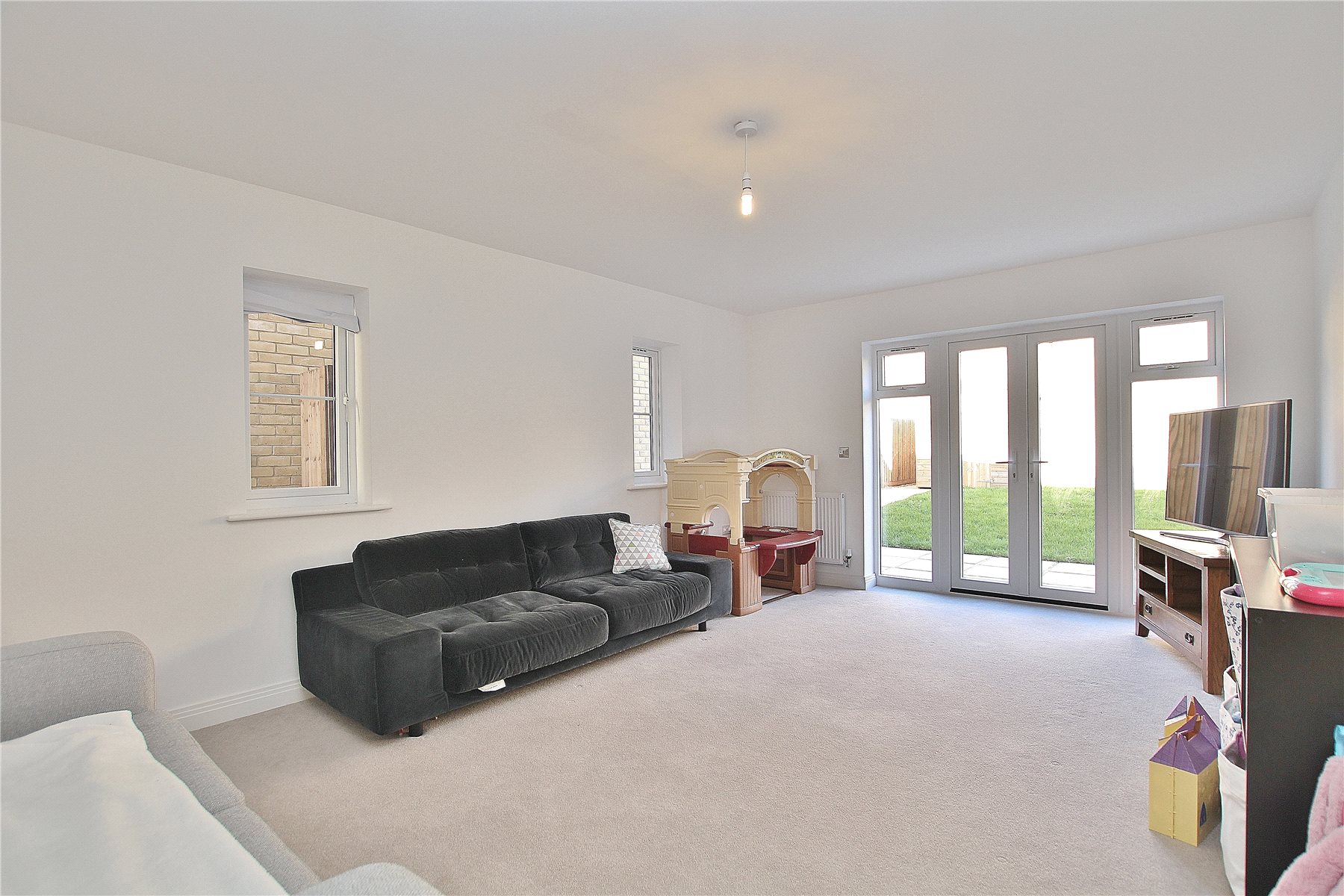 Positioned within the recently built Brookwood Farm Development, the property offers five well proportioned bedrooms, four of which include built-in wardrobes. Both the master bedroom and second bedroom benefit from ensuite bathrooms. The ground floor provides two reception rooms, a comfortable lounge and a versatile playroom, while the impressive open-plan kitchen/dining area serves as the true heart of the home, perfect for modern family life.