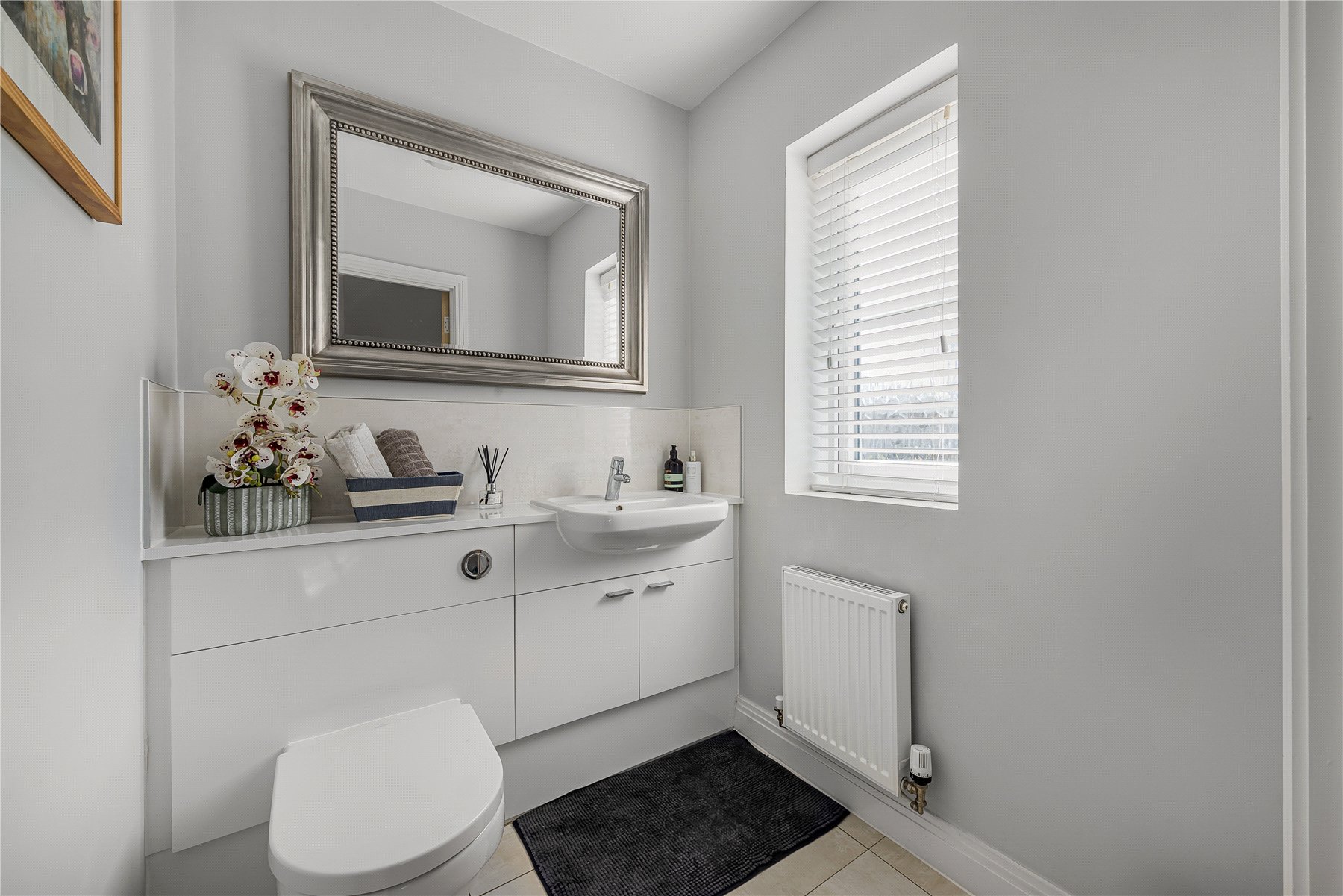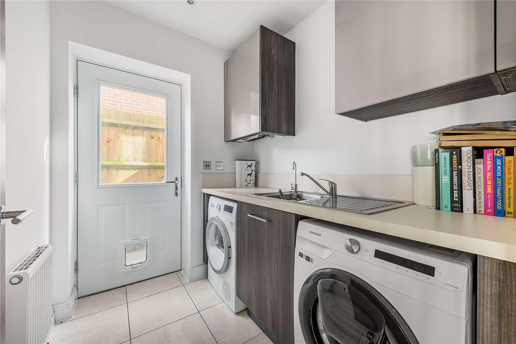 The ground floor forms the heart of the home, showcasing a beautifully designed open-plan kitchen, dining and living space ideal for modern family life. The kitchen is equipped with a range of base and wall mounted units, stone work surfaces, integrated appliances and a peninsula providing seating for two. A separate utility room sits just off the kitchen, while a cloakroom completes the ground floor.