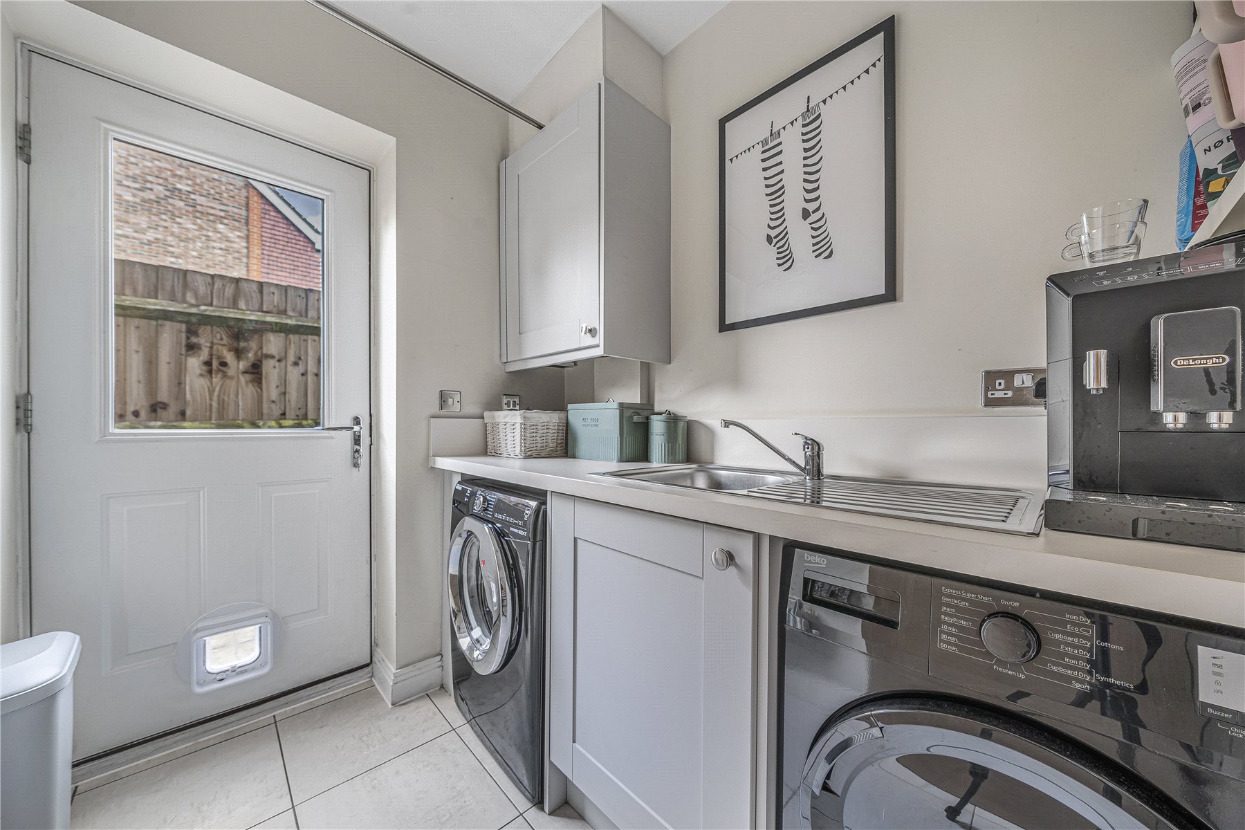 The ground floor features a stunning open plan kitchen, dining, and living area, creating the heart of the home. The kitchen is fitted with a range of shaker style base and eye level units, complemented by stone worktops and a host of integrated appliances, including a double oven, gas hob, and fridge freezer. A separate utility room and downstairs cloakroom add further convenience.