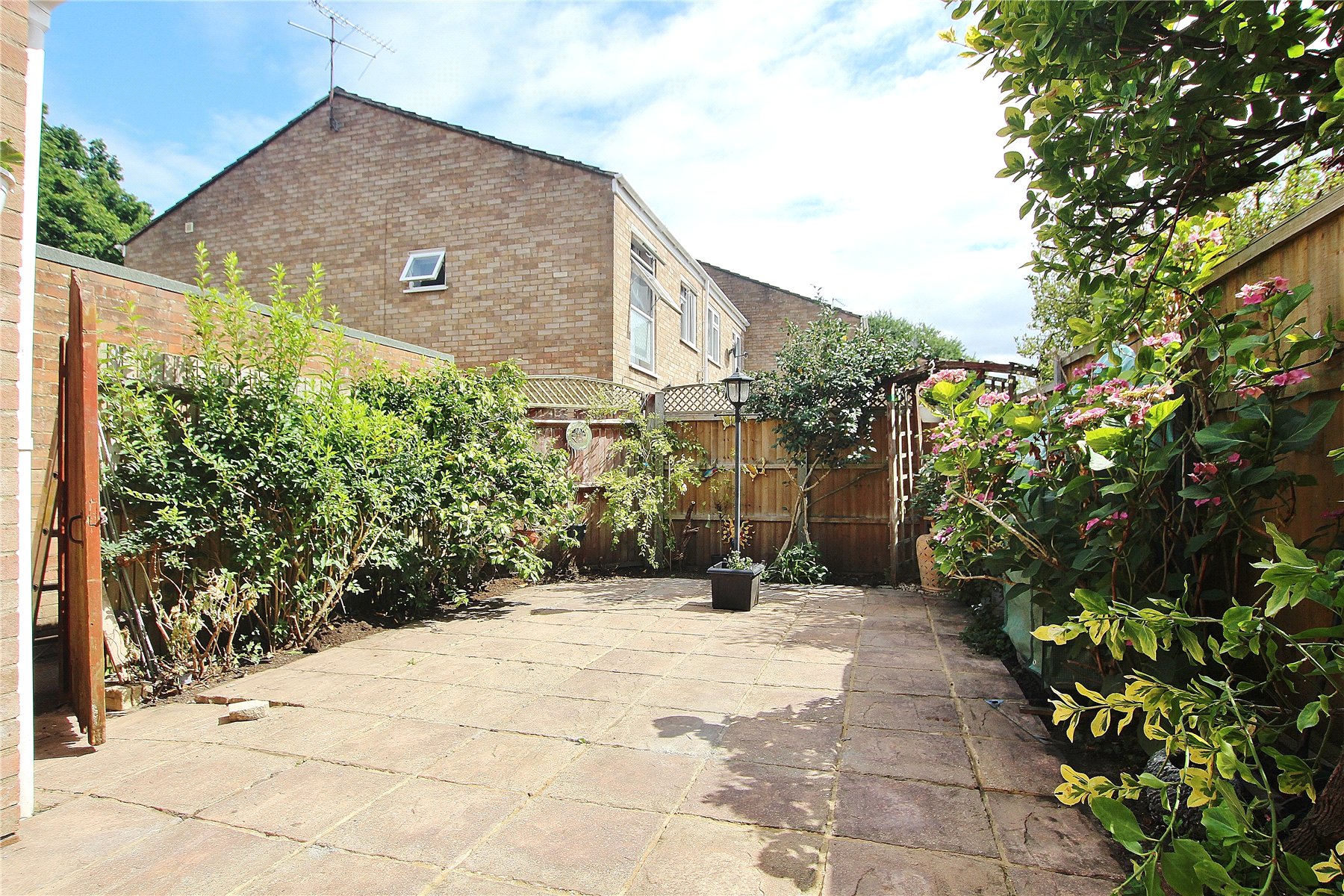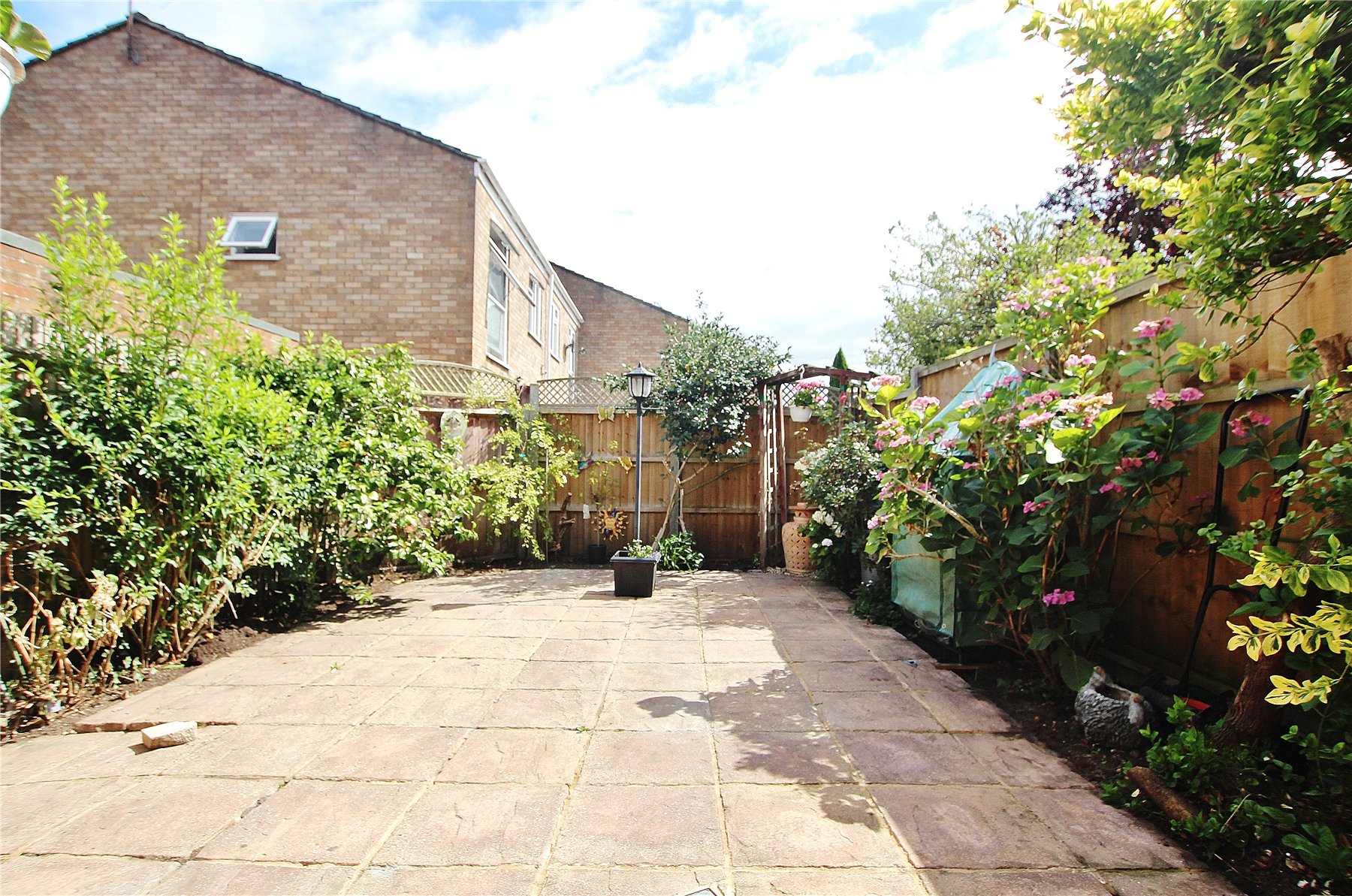 Outside there is a low maintenance rear garden with a patio that is enclosed by landscaped borders planted with an array of mature plants and shrubs. To the front is another well maintained garden that is laid to lawn.