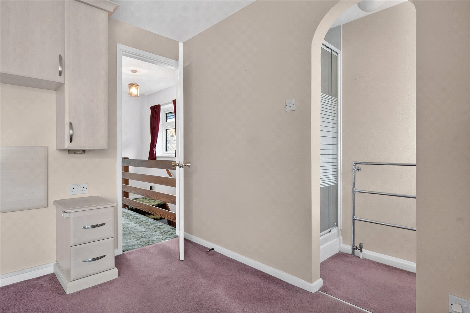 The accommodation comprises three bedrooms, including a master bedroom with ensuite, together with a four piece family bathroom featuring a separate bath and walk-in shower.
