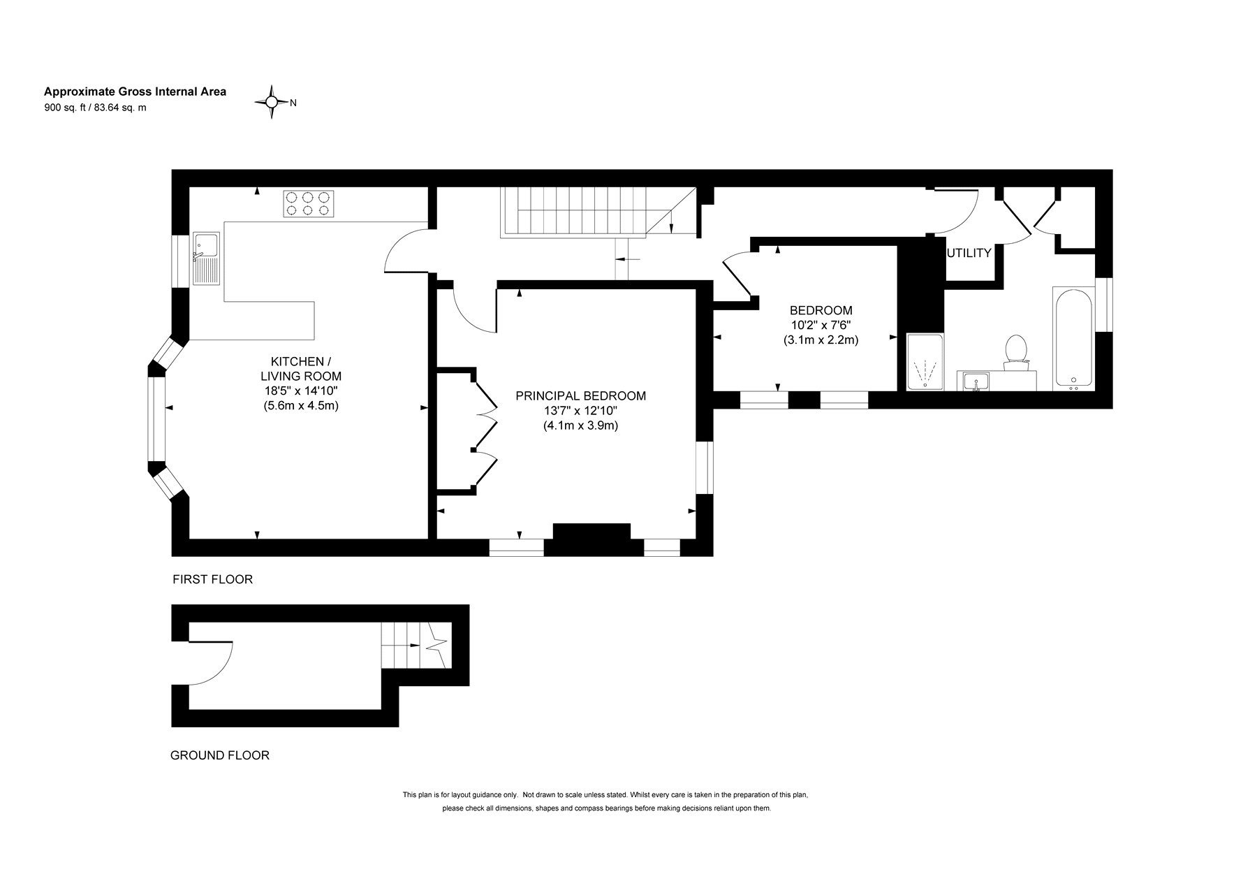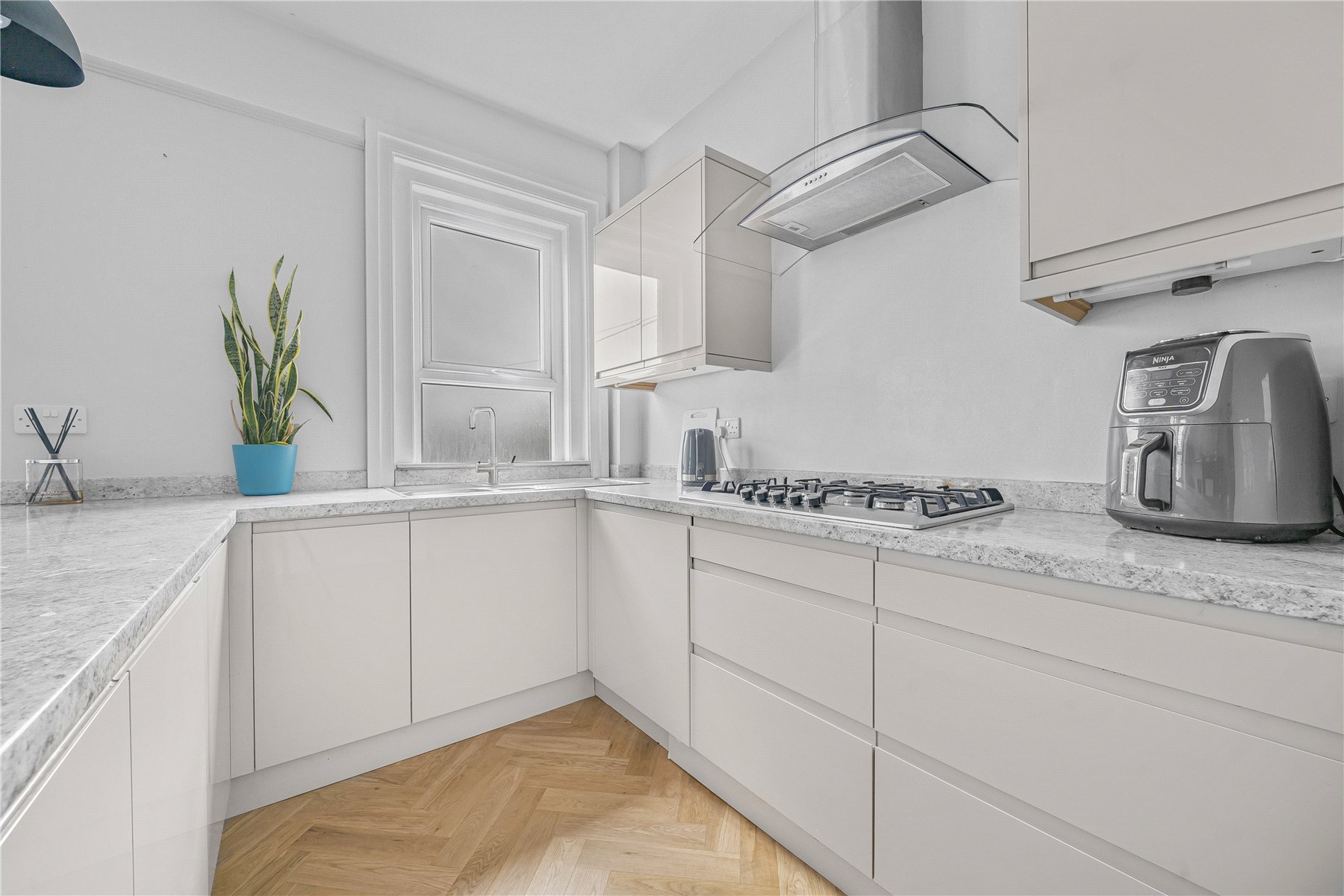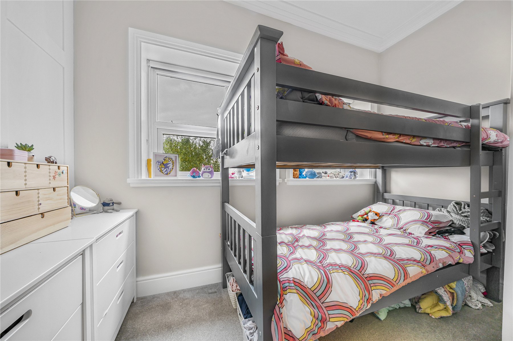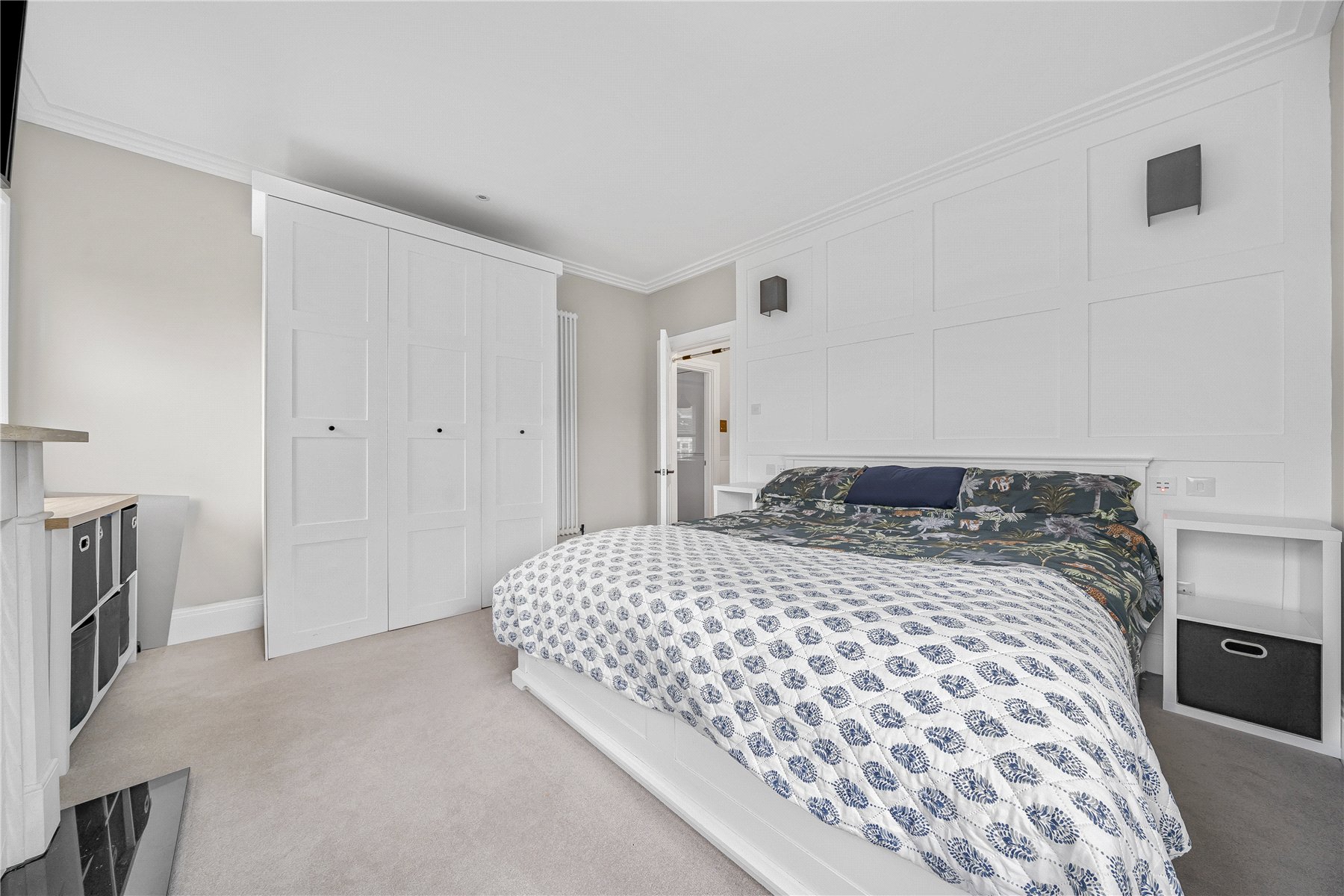 Accessed via its own private front door, the property opens into a welcoming entrance hall featuring engineered oak wood flooring, which continues up to the first-floor landing and through the main living space. The first-floor landing leads to all rooms, including two bedrooms. The principal bedroom is a generous double, complemented by an excellent range of built-in wardrobes. Both bedrooms share the use of a modern four-piece bathroom, fitted with a vanity unit and wash hand basin, WC, separate shower, and bath.