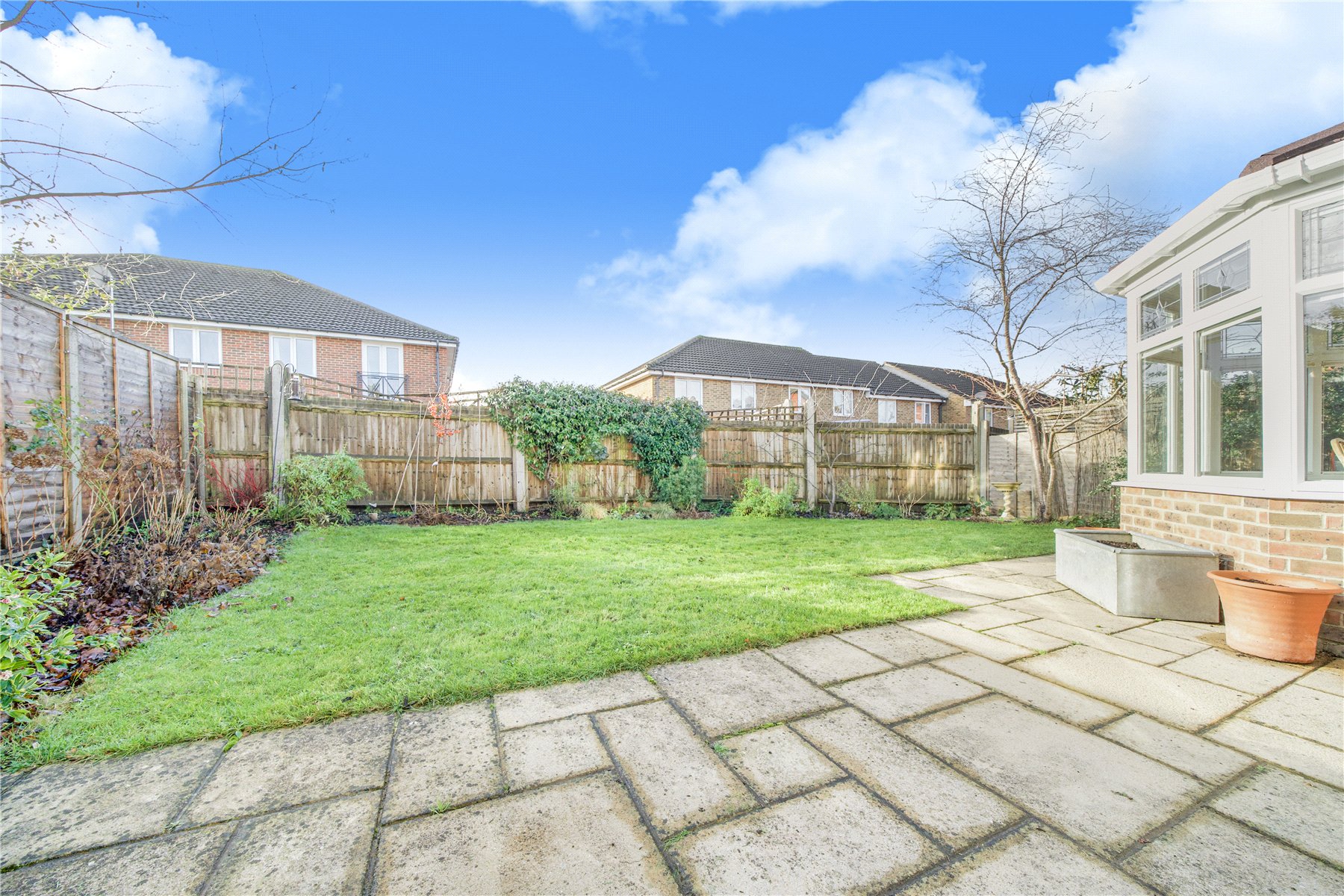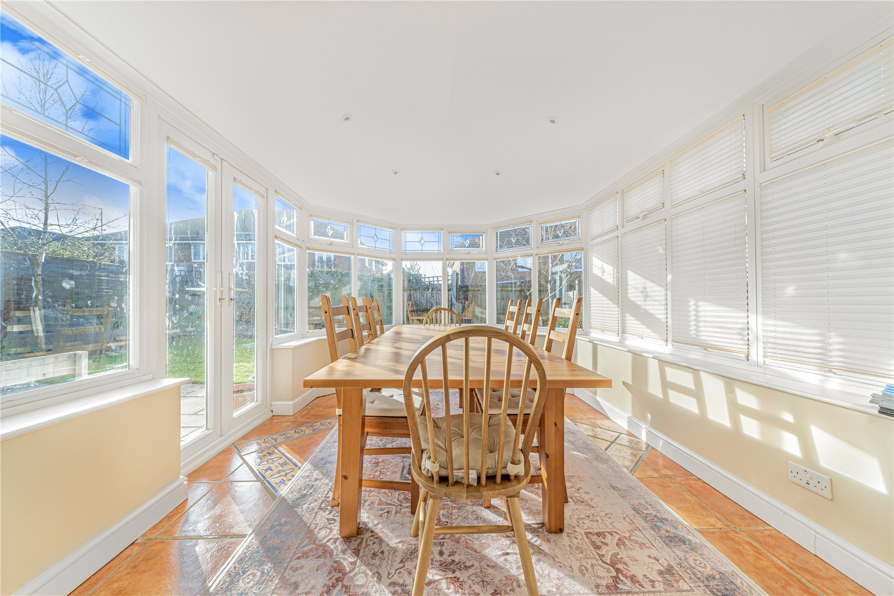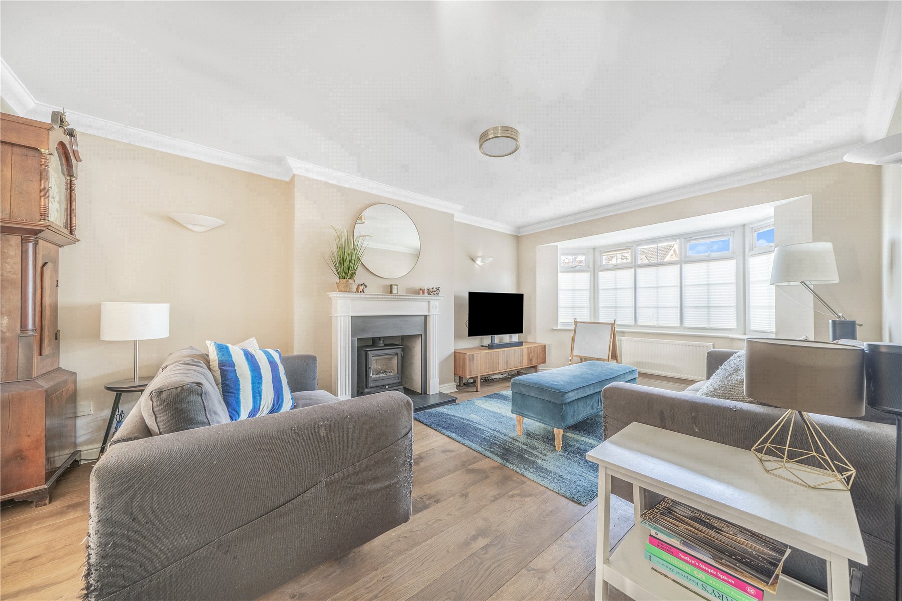 The ground floor offers excellent living and entertaining space. A spacious front aspect living room features a charming fireplace fitted with a log burner, while an adjoining reception room is currently utilised as a family room. To the rear, a conservatory with a solid roof provides a comfortable year-round dining area and enjoys views over the garden.