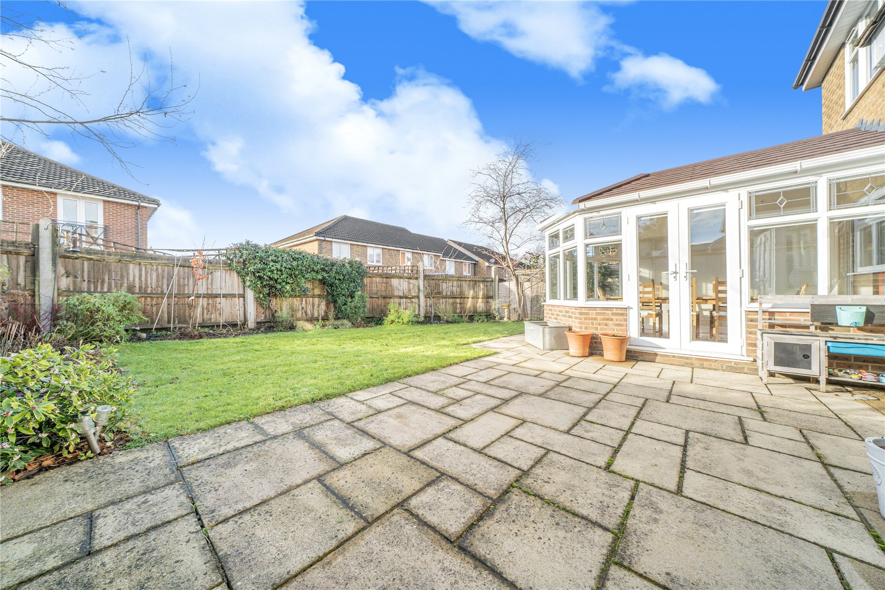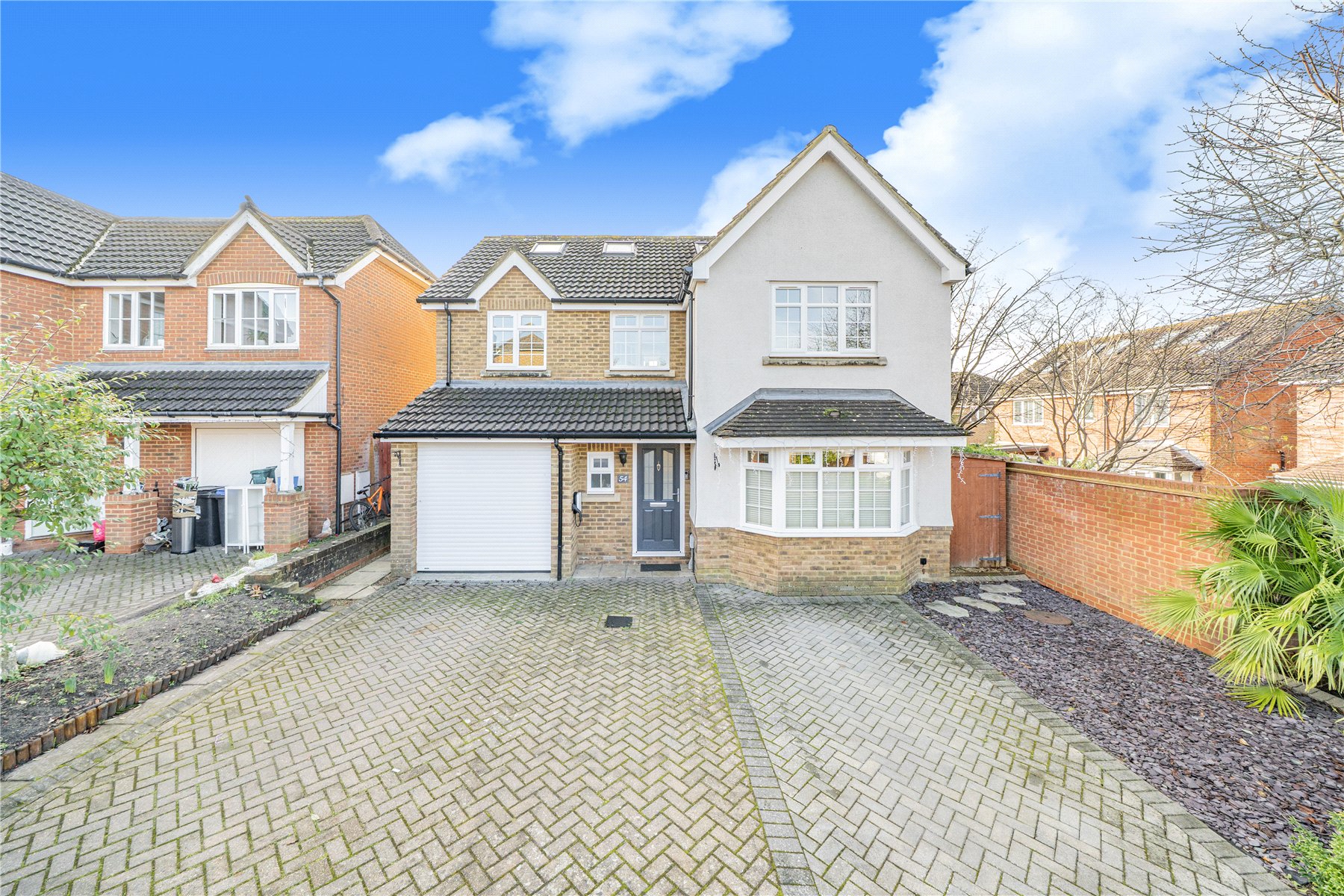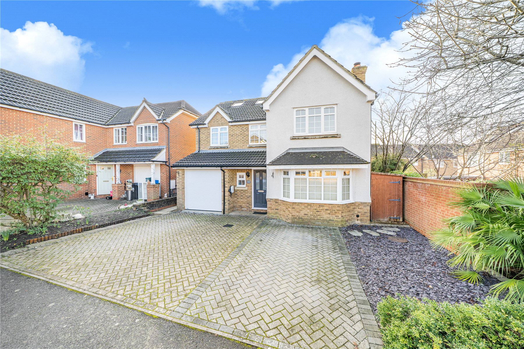 Outside, the pleasant rear garden is mainly laid to lawn with a patio area ideal for outdoor dining. To the front, a block-paved driveway provides parking for two vehicles and includes an EV charging point.