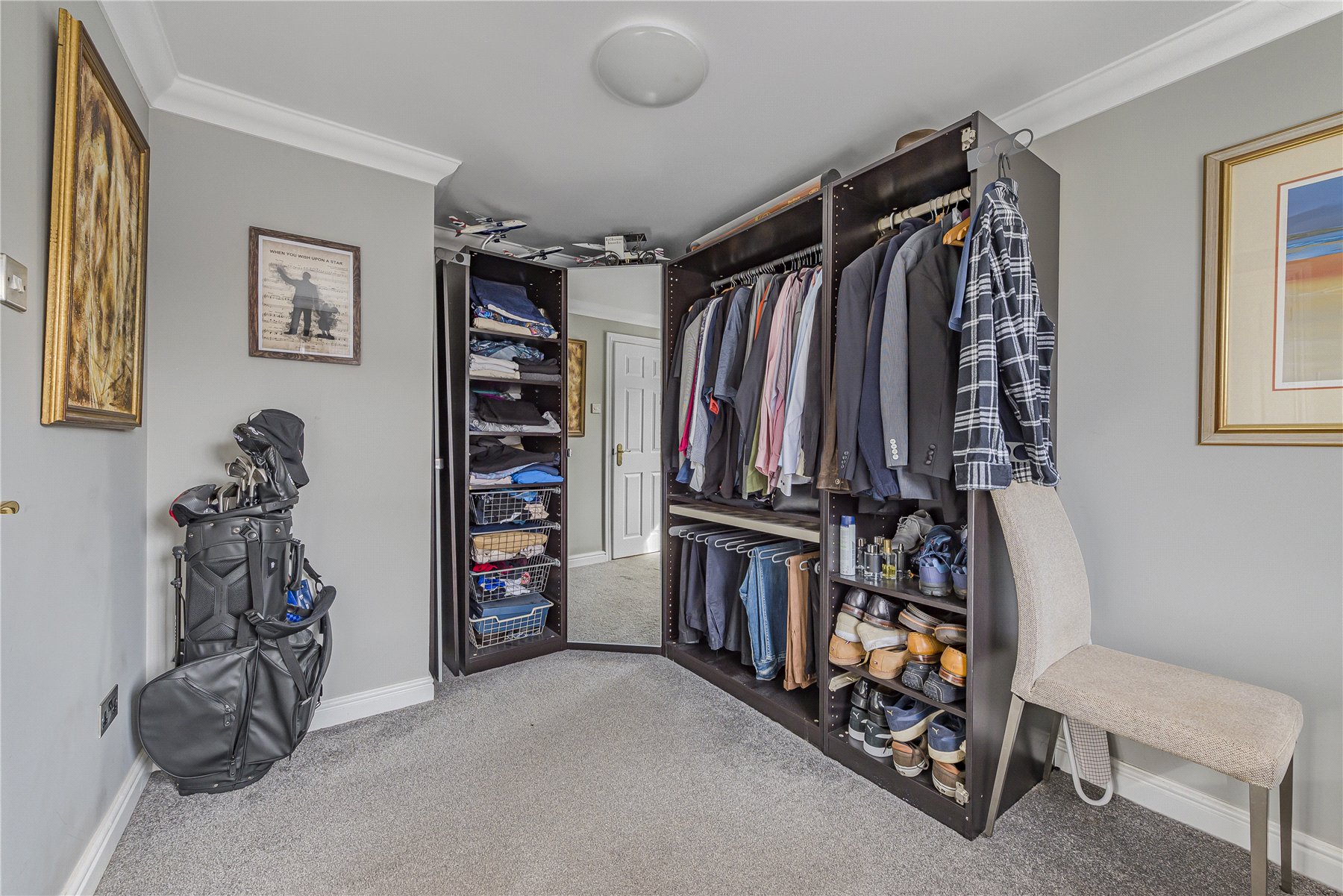 On the first floor, there are four well-proportioned bedrooms. The impressive principal suite benefits from a range of fitted wardrobes and drawers, as well as a stylish ensuite shower room. The remaining bedrooms are served by a luxurious family bathroom, complete with a four-piece suite including a double ended bath and a separate walk-in shower.