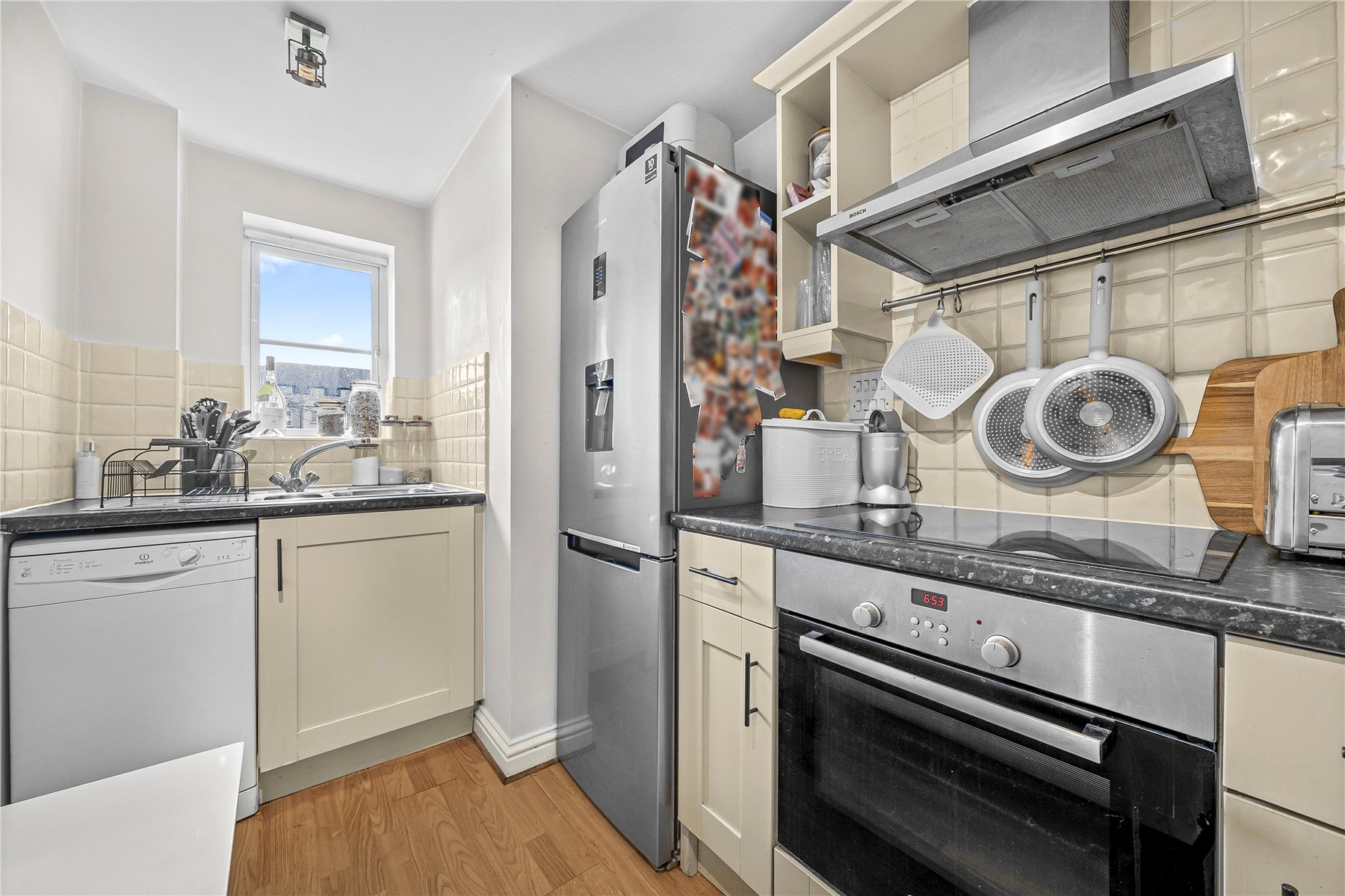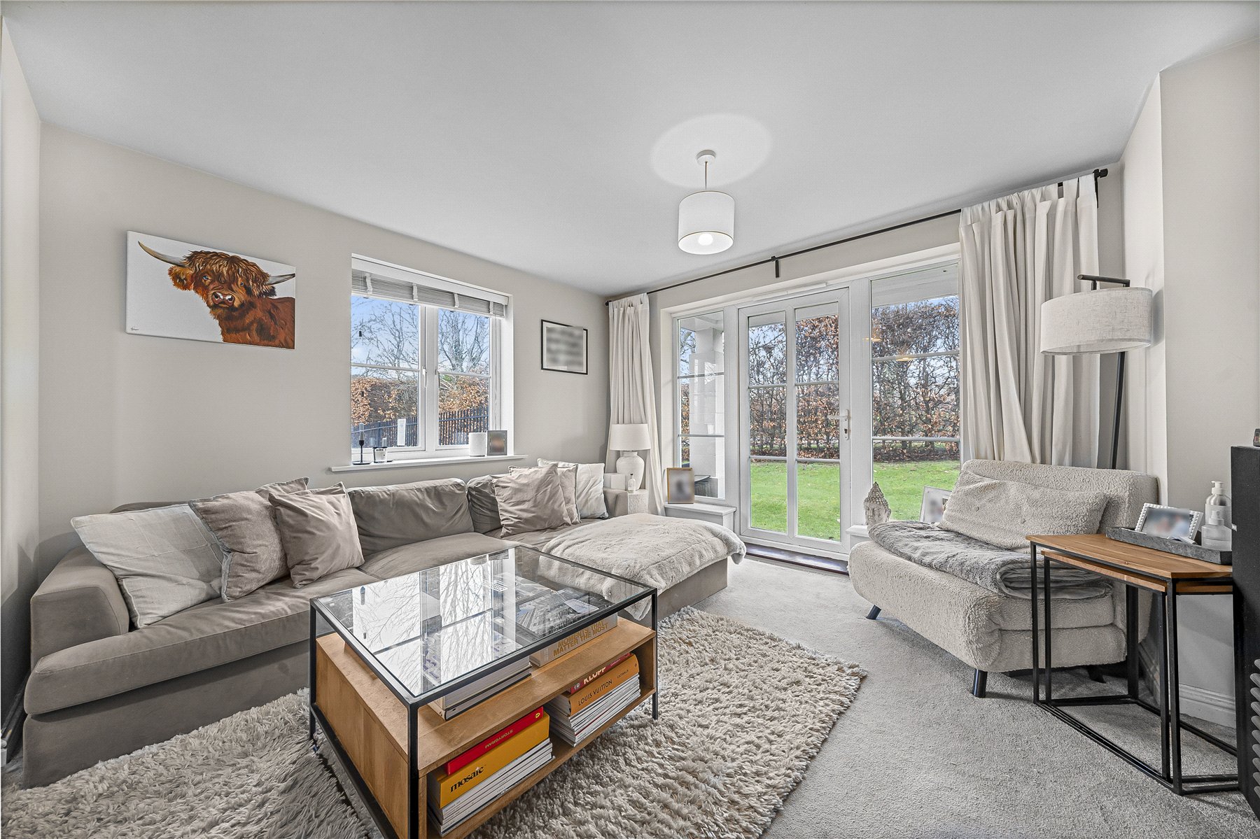 The kitchen is separate from the main living space and is fitted with a range of base and eye level units, an integrated oven with electric hob and space for additional appliances. The heart of the home is the spacious living/dining room, which enjoys direct access via a door to the communal garden area, perfect for outdoor enjoyment or entertaining.