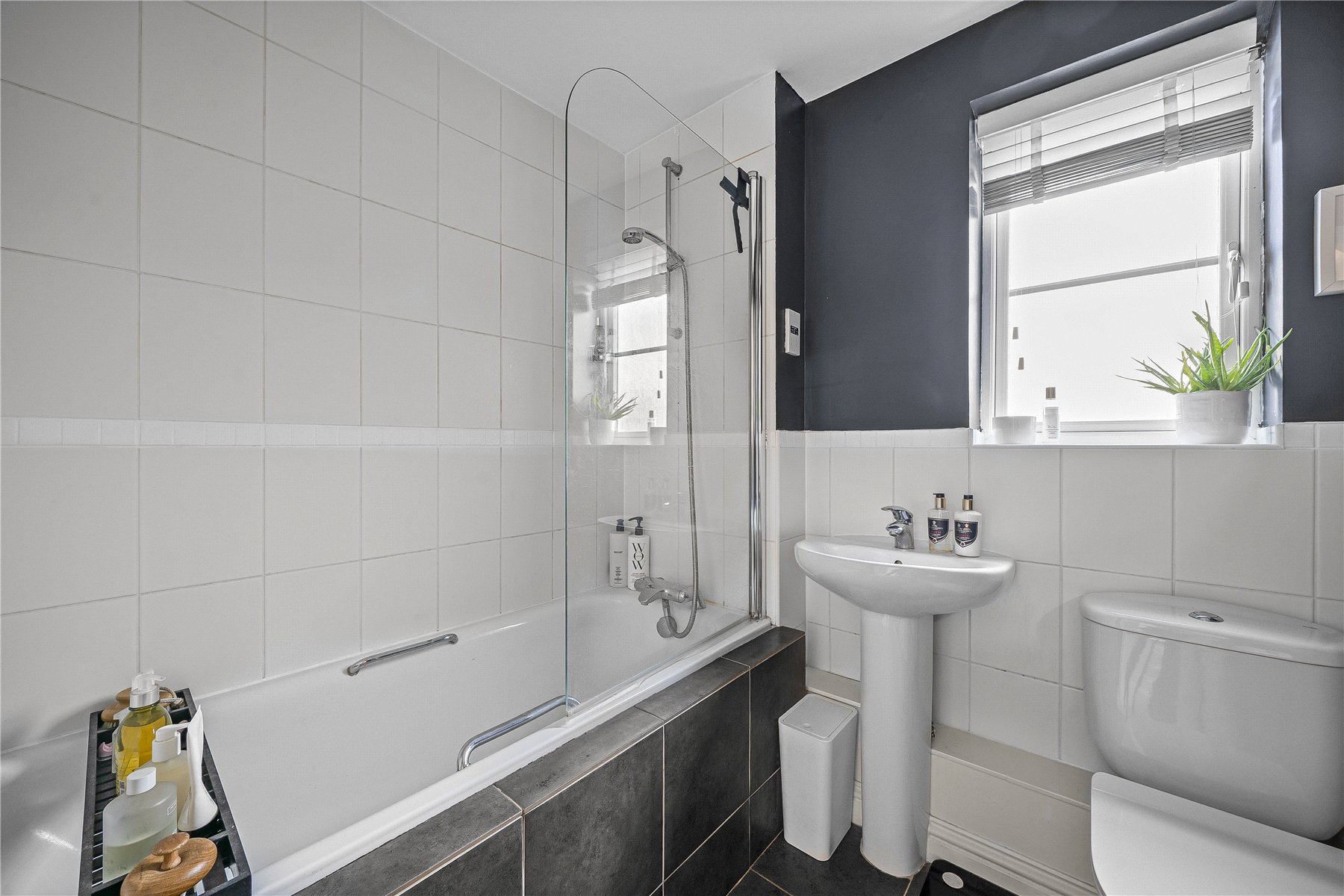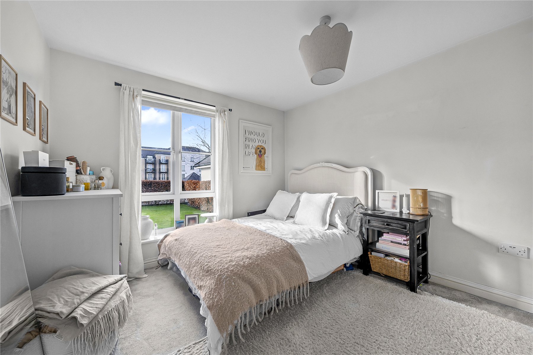 The accommodation comprises two double bedrooms, with the principal bedroom benefiting from built-in wardrobes and a modern ensuite shower room. A separate family bathroom is fitted with a contemporary three-piece suite.