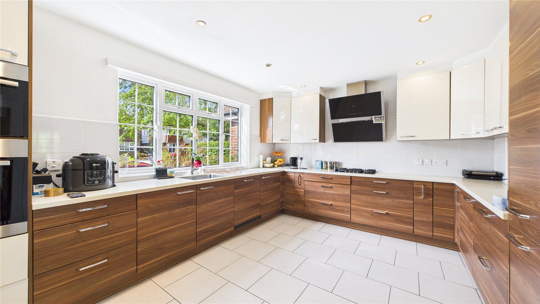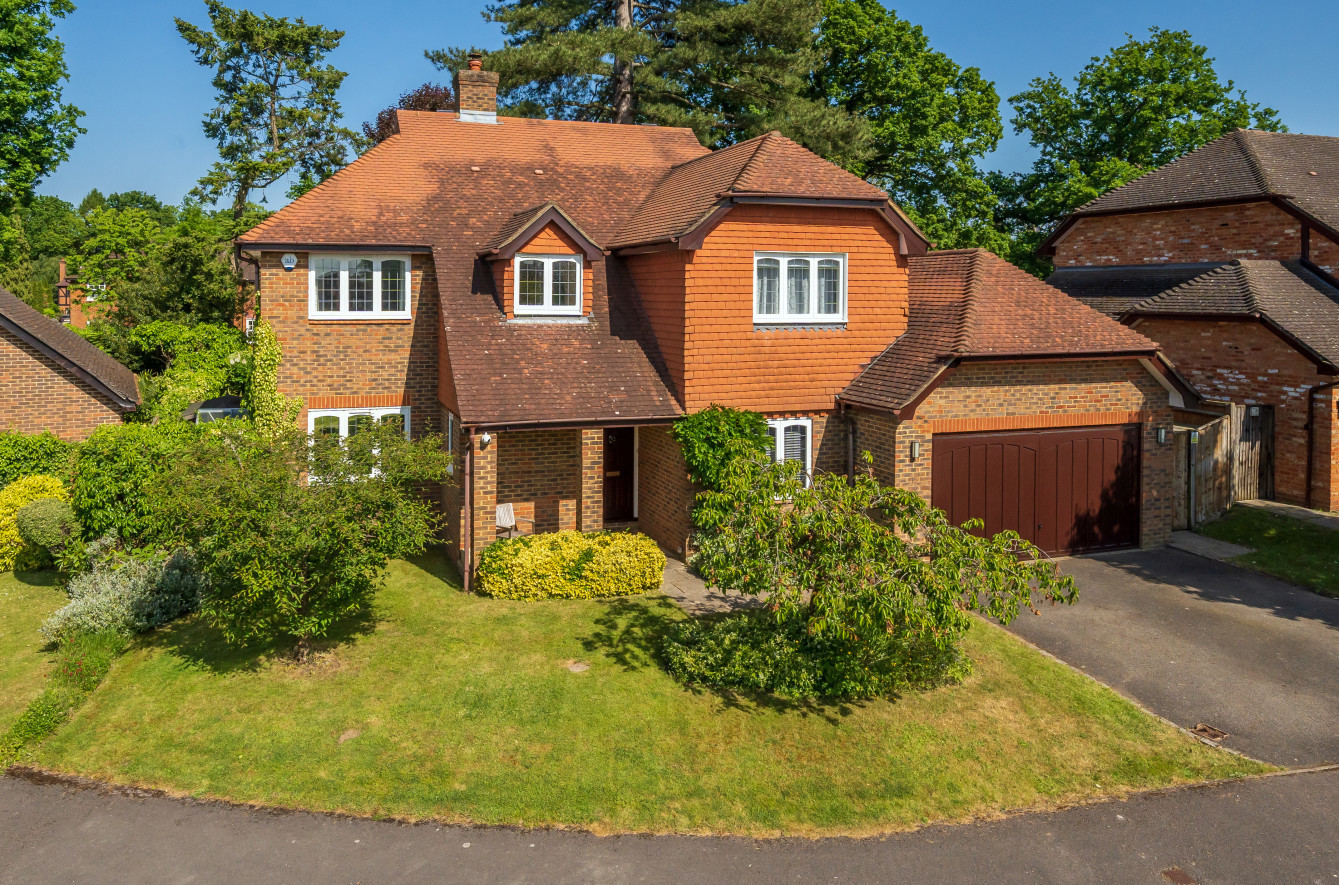 Occupying a discreet position within a peaceful cul-de-sac in the heart of Horsell, this beautifully presented detached family home offers both space and seclusion in equal measure. Set behind a wide carriage-style driveway, the property sits comfortably on a generous plot and enjoys the benefit of a private, south-facing rear gardena perfect setting for family life and entertaining alike.The home unfolds from a bright and welcoming entrance hall, where carefully considered proportions and an abundance of natural light give an immediate sense of calm and comfort. To the front of the house, a versatile reception room provides the ideal space for a study, playroom or formal dining, while to the rear, the principal living room offers an elegant retreat with a classic fireplace and uninterrupted garden views. The kitchen, positioned to one side, is finished in a timeless style and offers a practical yet sociable layout, with ample cabinetry and worktop space. It opens out to the rear garden, making al fresco dining effortless during the warmer months. Adjacent to the kitchen, a separate utility room and downstairs cloakroom add further convenience to the ground floor.Upstairs, the accommodation continues to impress. The principal bedroom is a peaceful haven, complete with its own private en-suite featuring a four-piece bathroom suite. A second bedroom also benefits from en-suite facilities, offering an ideal space for guests or older children, while two further well-sized bedrooms are served by a stylish family shower room. Each room enjoys views over either the manicured garden or the quiet residential setting to the front.Externally, the landscaped rear garden is a true highlight. Facing south and thoughtfully planted with mature shrubs and borders, it offers both privacy and year-round interest. To the front, the sweeping driveway provides parking for multiple vehicles and access to the garage.Located just moments from the charming Horsell Village and within walking distance of excellent schools, green open spaces and Wokings mainline station, this home is ideally placed for family living and commuting alike. The sense of tranquillity offered by Wheatsheaf Close is matched only by its conveniencemaking this a rare opportunity to acquire a substantial and well-balanced home in one of Horsells most desirable settings.