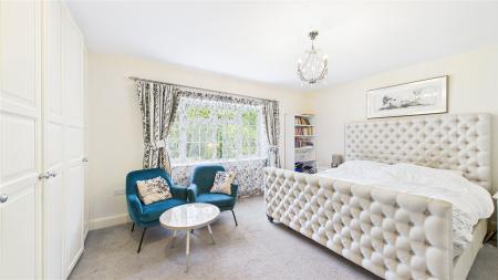 Master Bedroom Rear aspect double glazed window with radiator beneath, bespoke fitted wardrobes, door to: