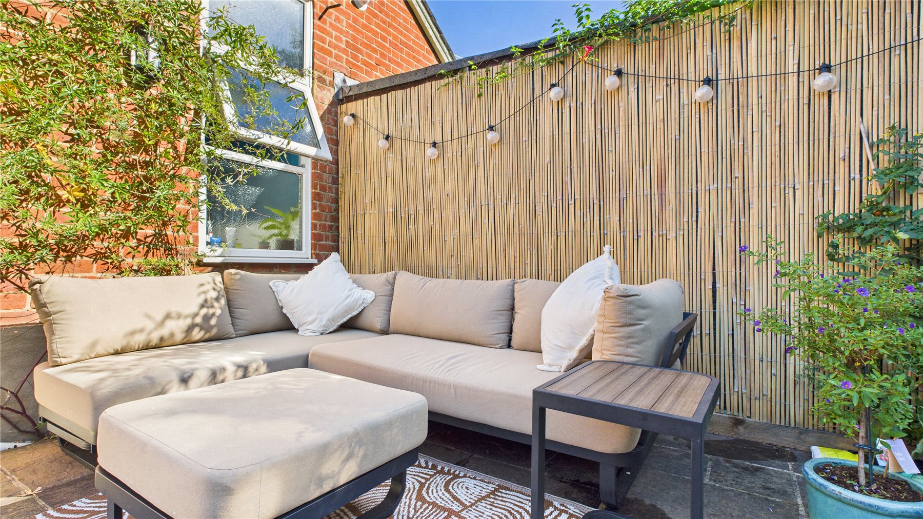 To the rear, a south-facing, recently landscaped garden with sun terrace, lawn area, and a large storage shed offers the perfect spot to enjoy the longer summer months. Side access leads to the front, where you will find off-street parking for two cars.