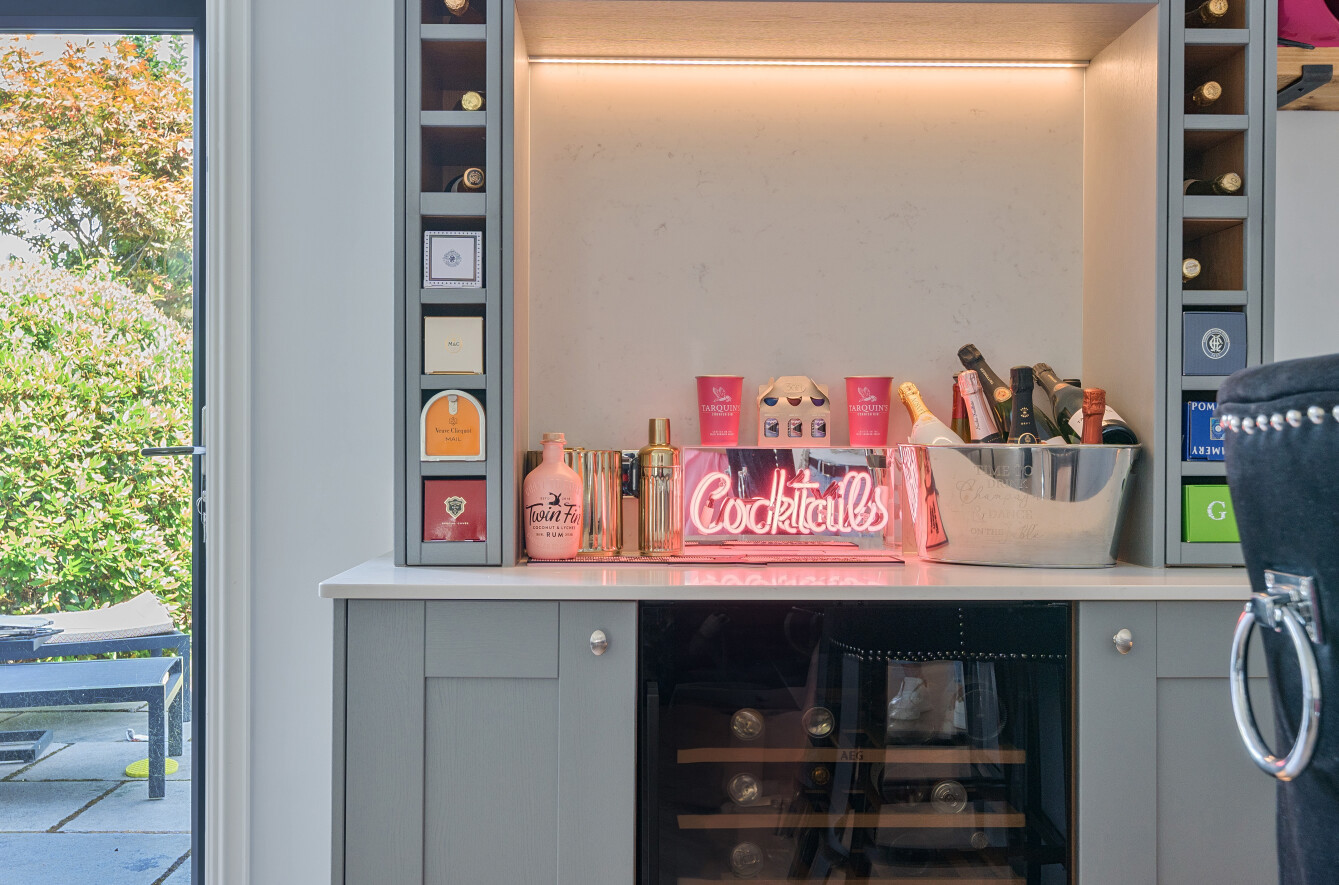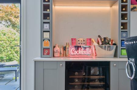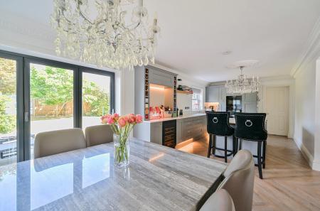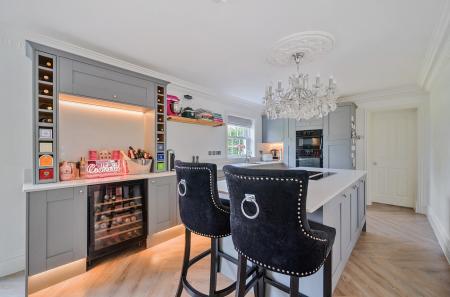 The formal sitting room creates a beautiful setting, with a hand built character red brick feature fireplace and granite hearth, floor to ceiling double glazed sash windows with a Georgian surround and chunky ceiling rose not forgetting the beautiful egg and dart detailed cornice that runs throughout this exceptional property. At the switch of a button, the lounge transforms into a movie room with a huge projector, ideal for cosy nights in and family film evenings.