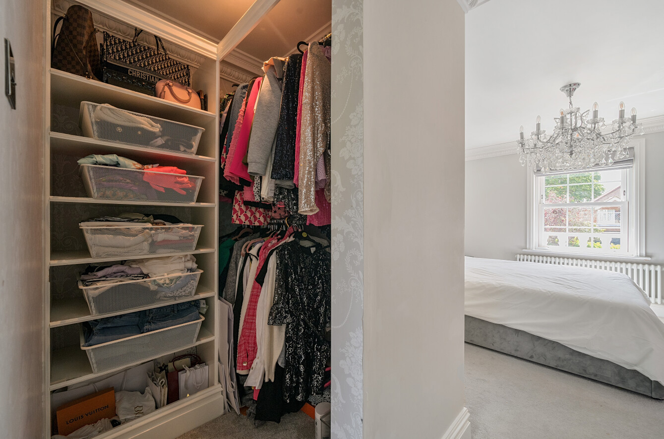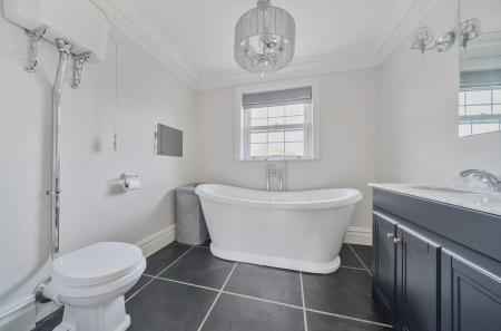 All four bedrooms are located on the first floor. Bedroom one features two fitted walk in wardrobe spaces and an incredible bio ethanol fireplace.