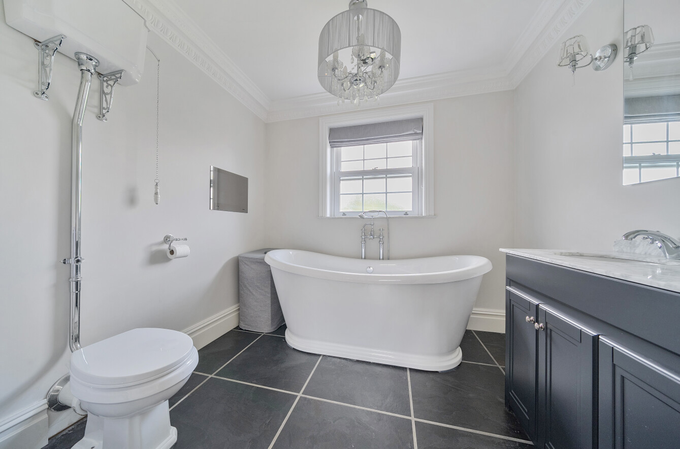 Two bedrooms have their own en-suite bathrooms. Here, you will find top quality fittings, including Italian marble and roll top baths