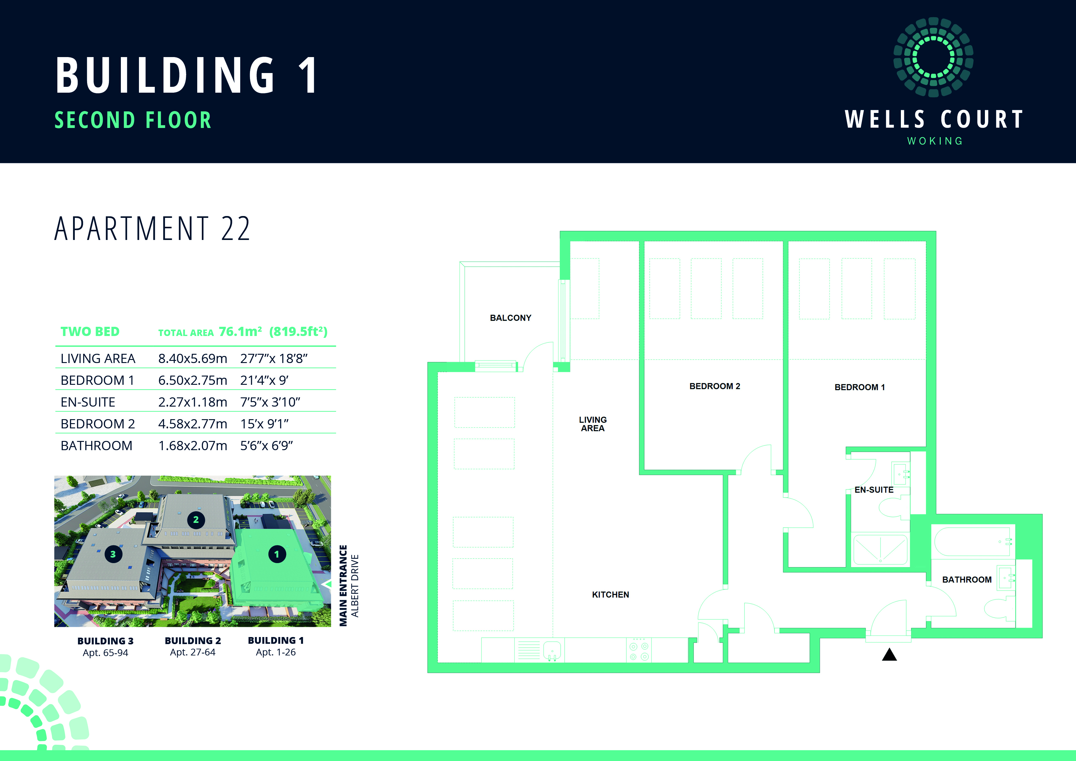Wells Court comprises 94 studio, 1 and 2 bedroom apartments, set over three floors and benefiting from tree-lined grounds and communal gardens with courtyard. The development is positioned just outside the bustle of vibrant Woking town centre, surrounded by the beautiful Surrey countryside and within easy reach of London.