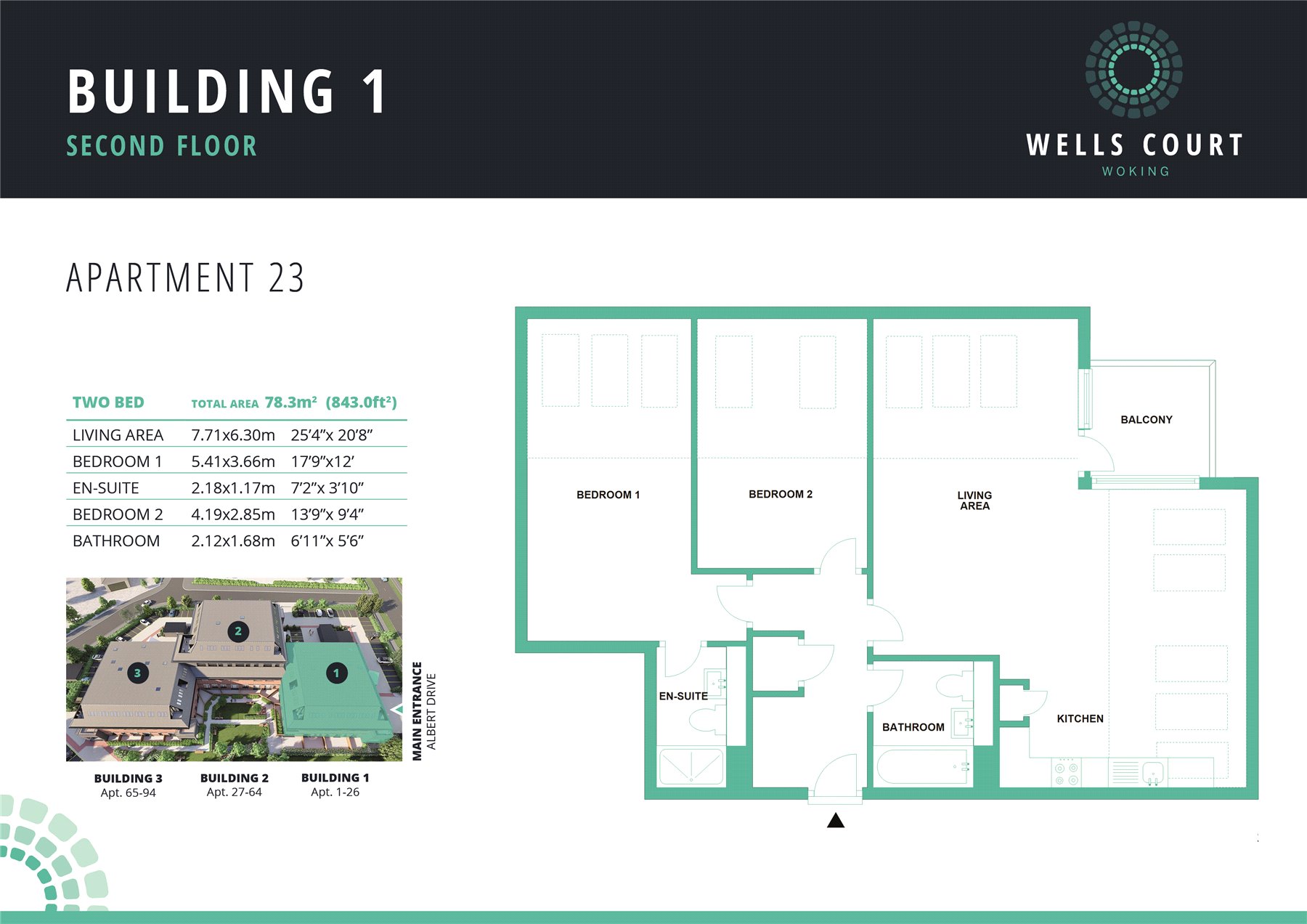 Wells Court comprises 94 studio, 1 and 2 bedroom apartments, set over three floors and benefiting from tree-lined grounds and communal gardens with courtyard. The development is positioned just outside the bustle of vibrant Woking town centre, surrounded by the beautiful Surrey countryside and within easy reach of London.