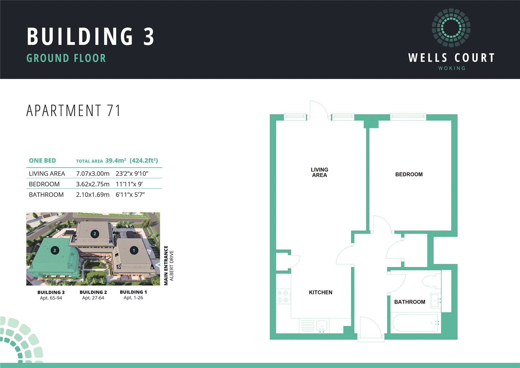 Wells Court comprises 94 studio, 1 and 2 bedroom apartments, set over three floors and benefiting from tree-lined grounds and communal gardens with courtyard. The development is positioned just outside the bustle of vibrant Woking town centre, surrounded by the beautiful Surrey countryside and within easy reach of London.