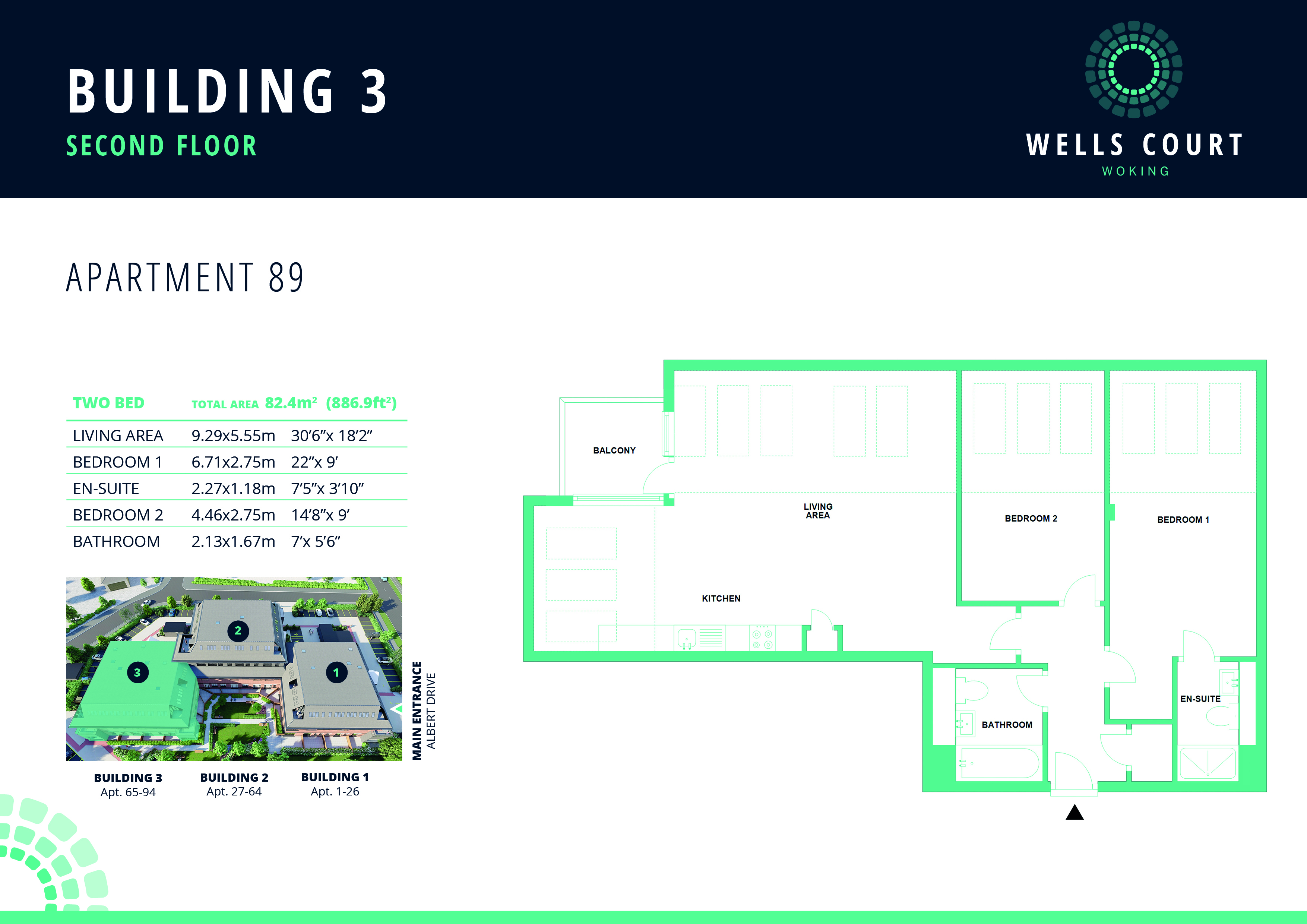 Wells Court comprises 94 studio, 1 and 2 bedroom apartments, set over three floors and benefiting from tree-lined grounds and communal gardens with courtyard. The development is positioned just outside the bustle of vibrant Woking town centre, surrounded by the beautiful Surrey countryside and within easy reach of London.