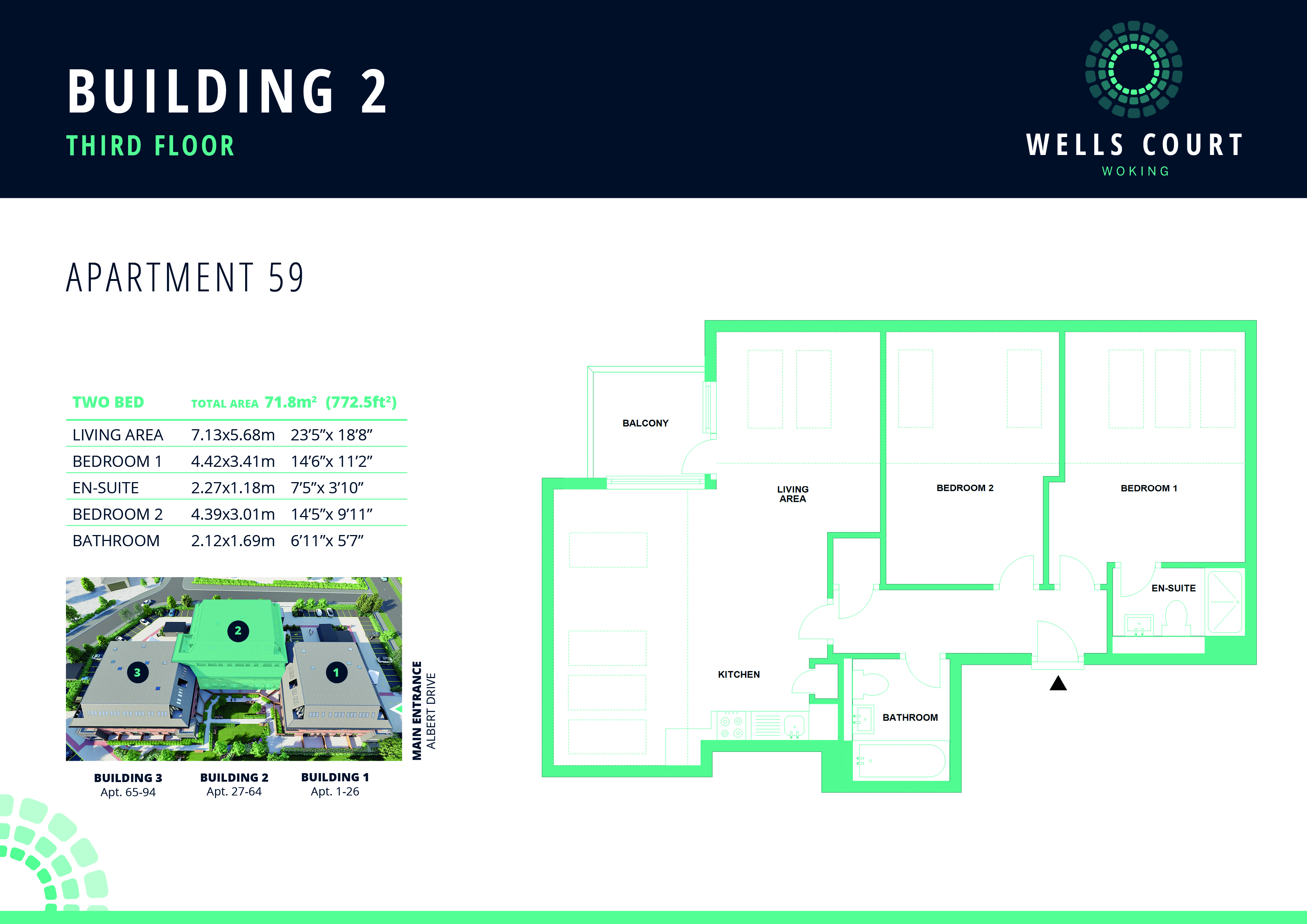 Wells Court comprises 94 studio, 1 and 2 bedroom apartments, set over three floors and benefiting from tree-lined grounds and communal gardens with courtyard. The development is positioned just outside the bustle of vibrant Woking town centre, surrounded by the beautiful Surrey countryside and within easy reach of London.