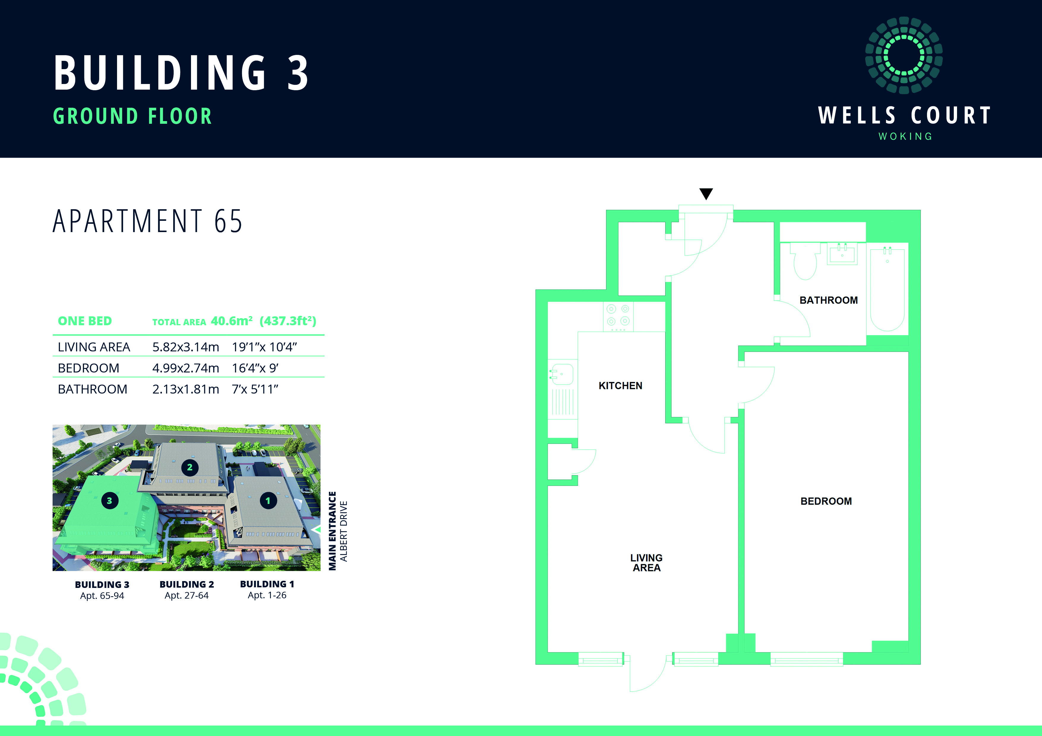 Wells Court comprises 94 studio, 1 and 2 bedroom apartments, set over three floors and benefiting from tree-lined grounds and communal gardens with courtyard. The development is positioned just outside the bustle of vibrant Woking town centre, surrounded by the beautiful Surrey countryside and within easy reach of London.