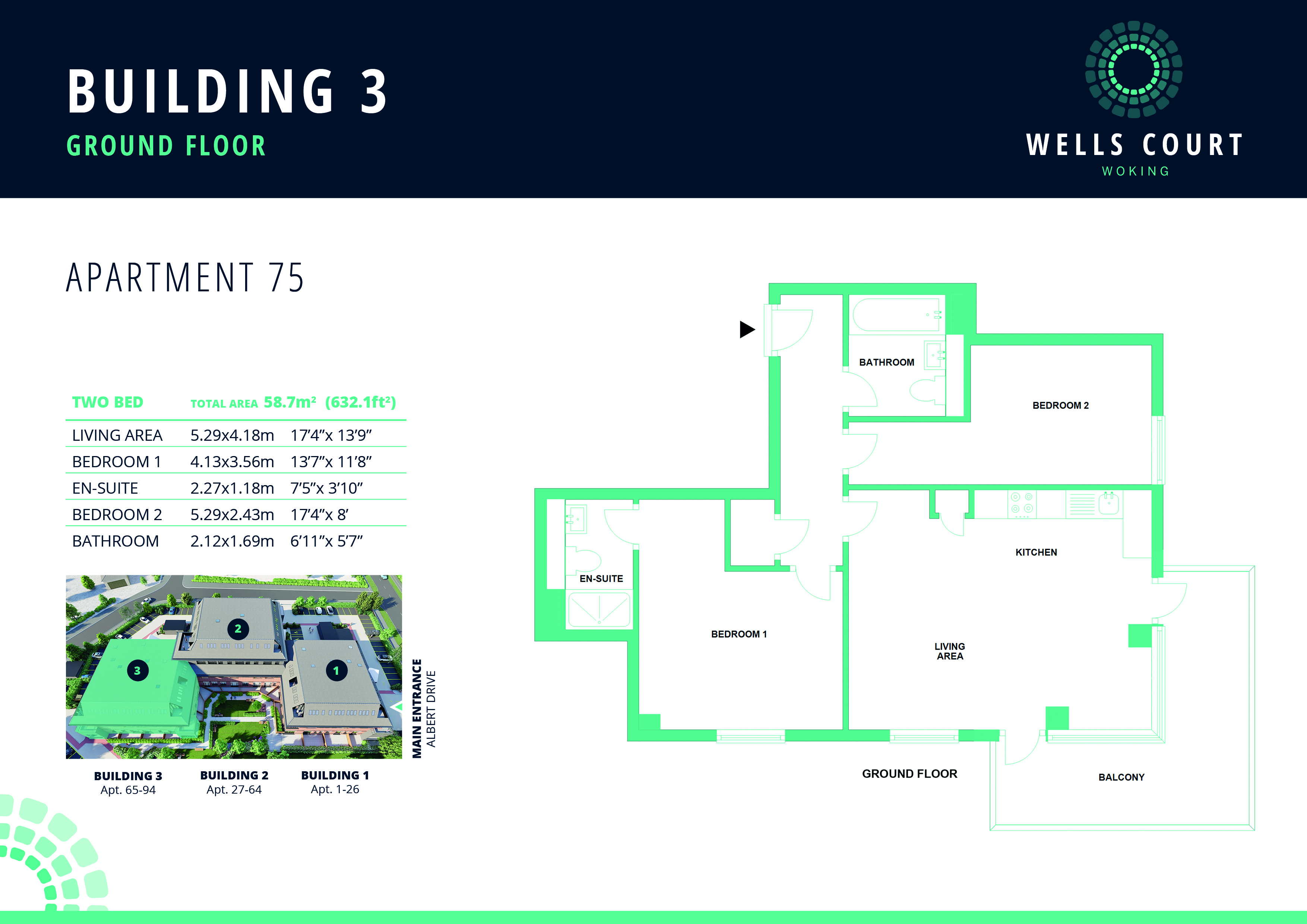 Wells Court comprises 94 studio, 1 and 2 bedroom apartments, set over three floors and benefiting from tree-lined grounds and communal gardens with courtyard. The development is positioned just outside the bustle of vibrant Woking town centre, surrounded by the beautiful Surrey countryside and within easy reach of London.