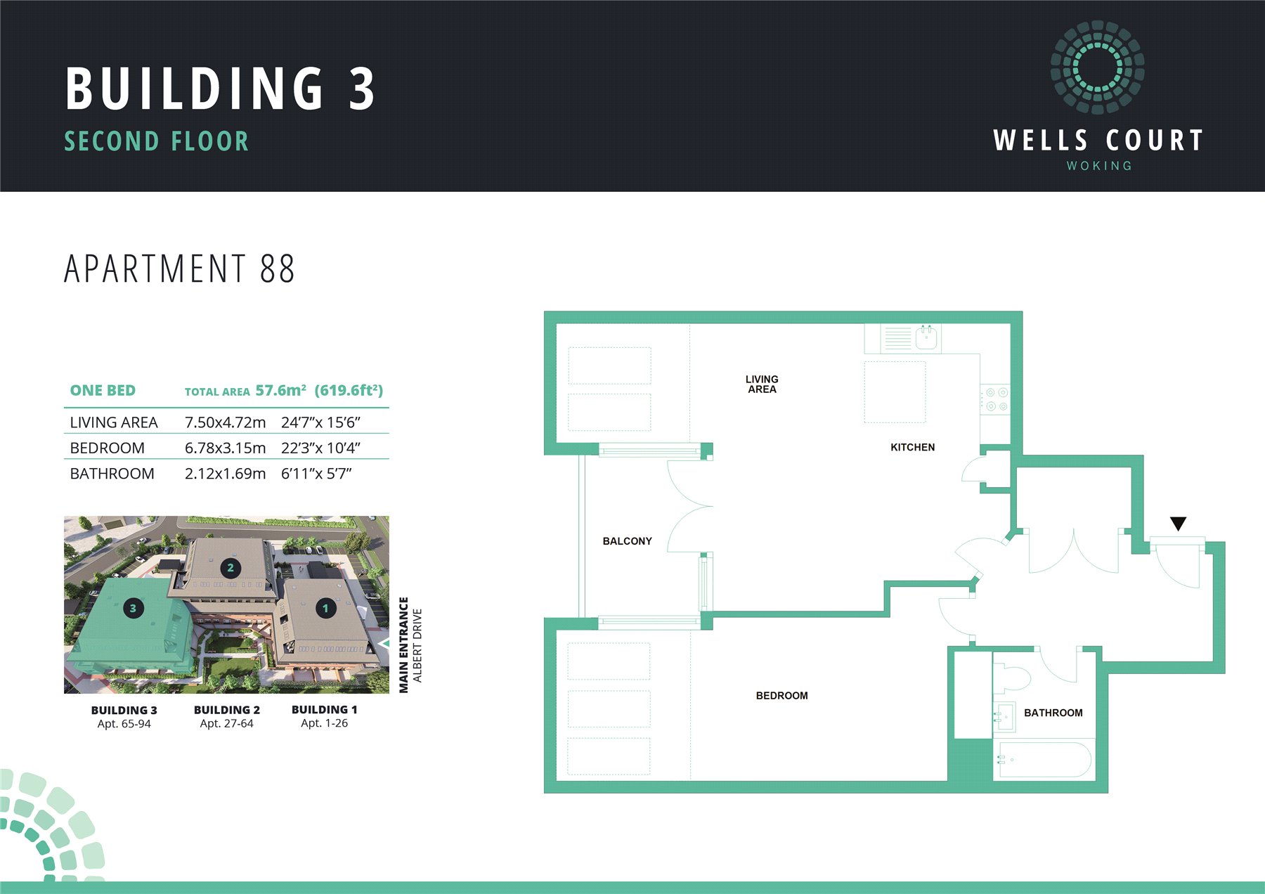 Wells Court comprises 94 studio, 1 and 2 bedroom apartments, set over three floors and benefiting from tree-lined grounds and communal gardens with courtyard. The development is positioned just outside the bustle of vibrant Woking town centre, surrounded by the beautiful Surrey countryside and within easy reach of London.