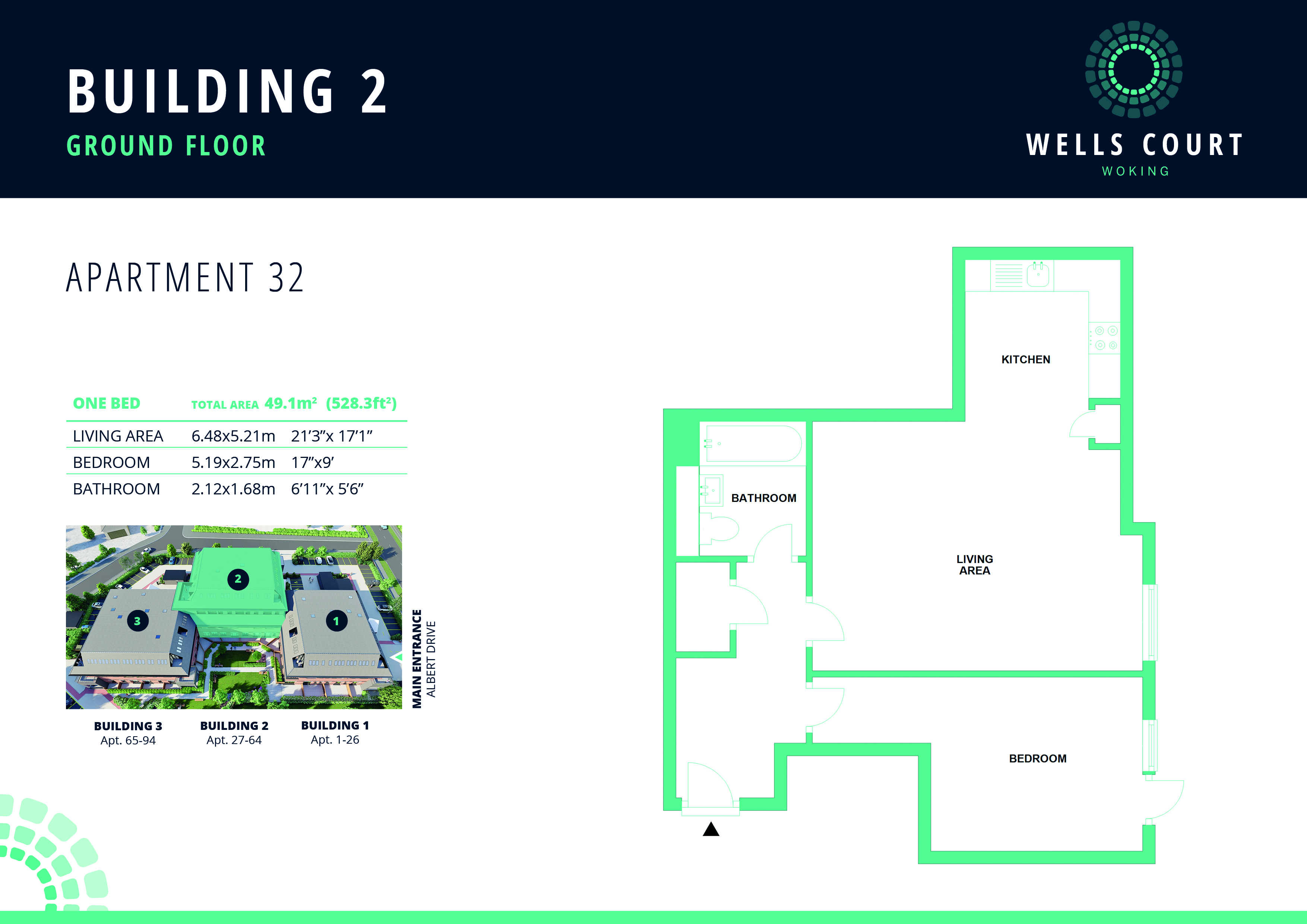 Wells Court comprises 94 studio, 1 and 2 bedroom apartments, set over three floors and benefiting from tree-lined grounds and communal gardens with courtyard. The development is positioned just outside the bustle of vibrant Woking town centre, surrounded by the beautiful Surrey countryside and within easy reach of London.