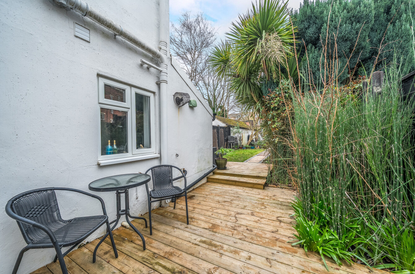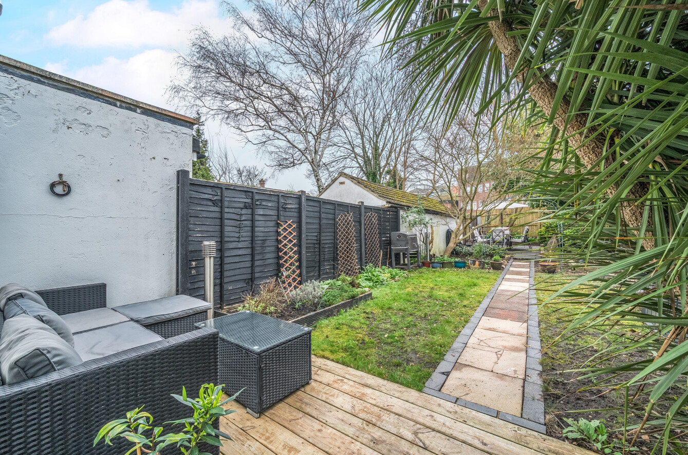 Externally, the rear garden is a particularly good size and, like the interior, is beautifully maintained, featuring patio and decking areas, well-stocked borders and enclosed panel fencing ideal for outdoor dining and relaxation.