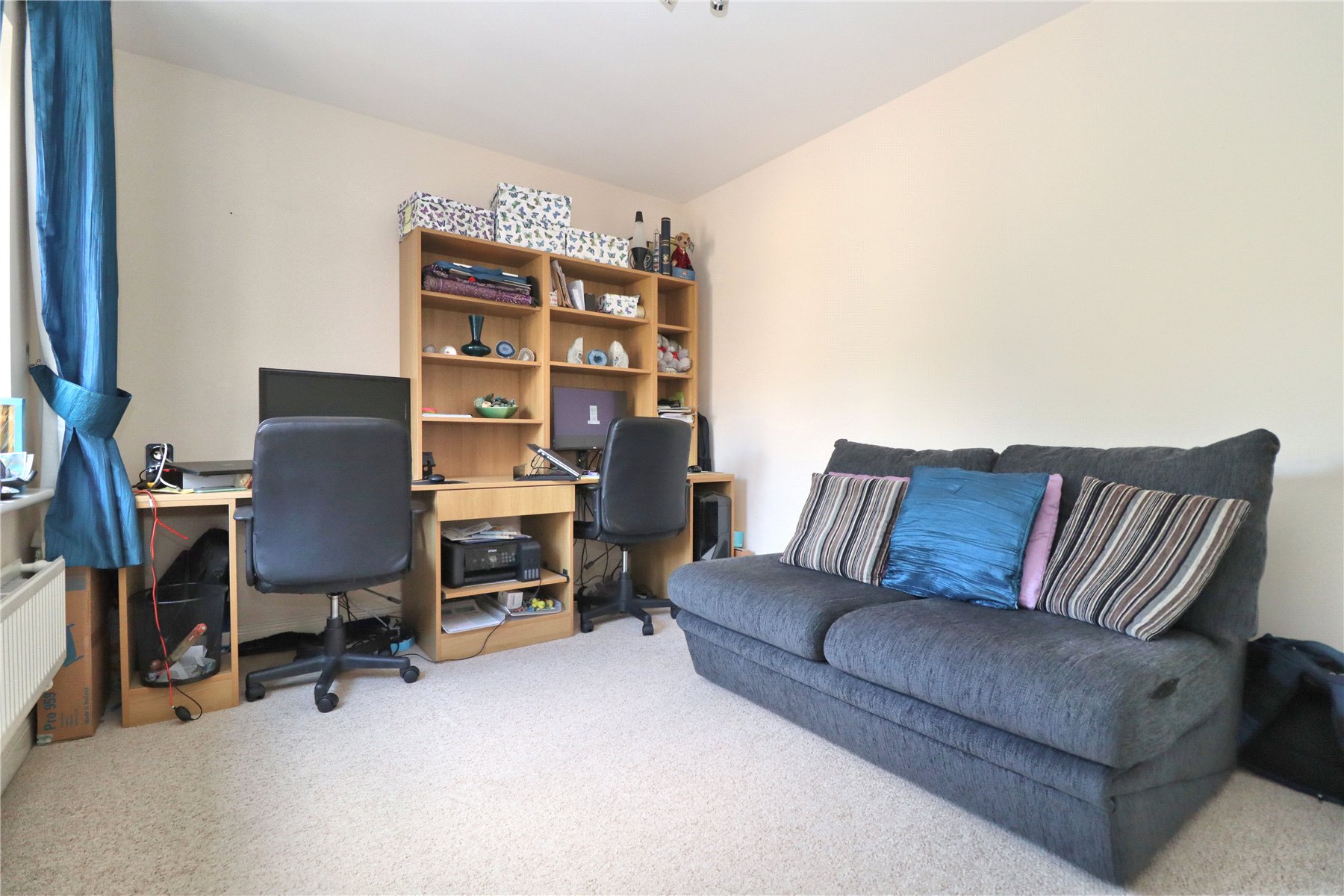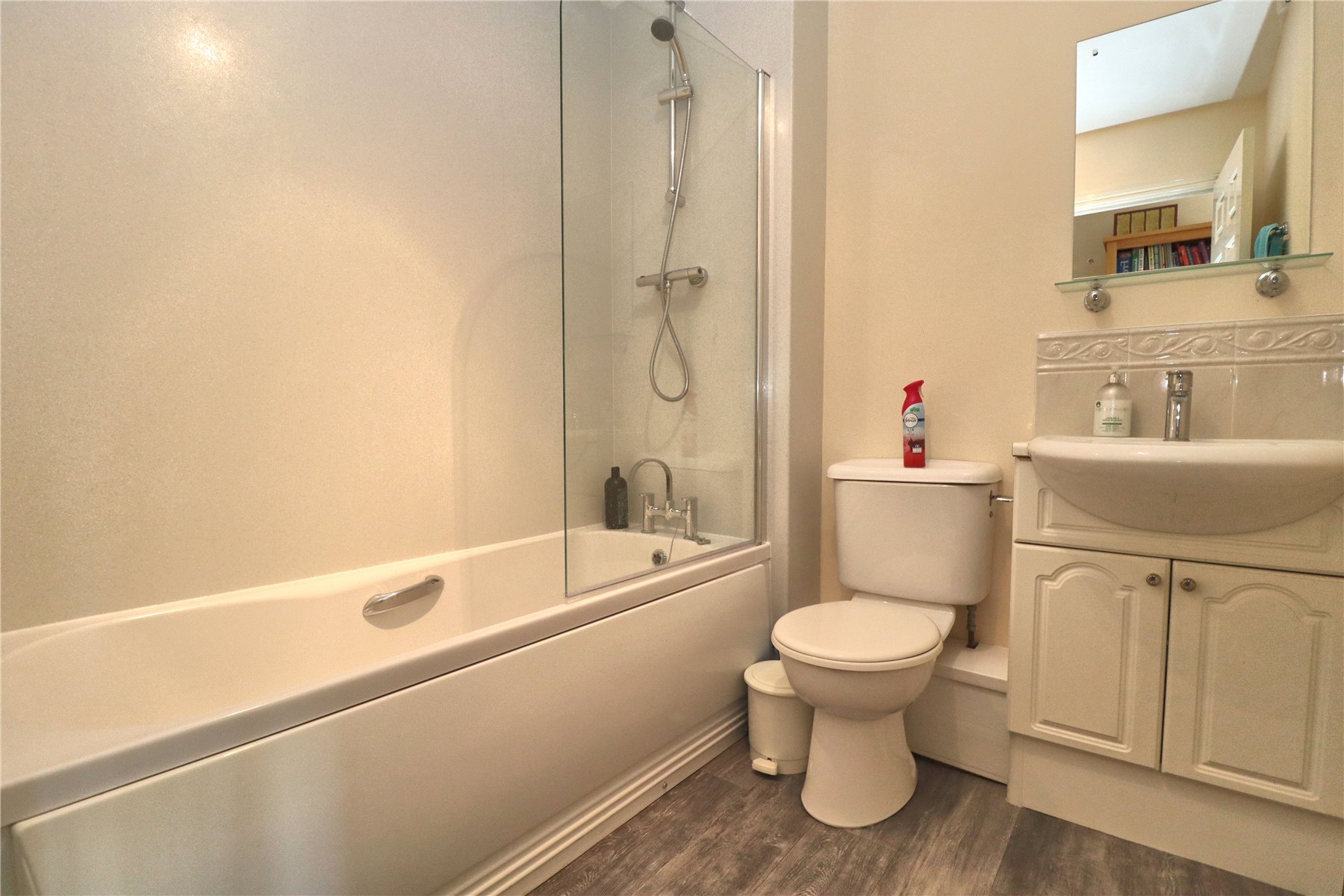 A spacious first floor apartment situated on the fringe of the town centre in this secure block, literally a few minutes to the town centre and station offering impressive accommodation which extends to approximately 770sq ft. The development is secure with a gated remotely operated entrance and a coded entry to each block. This particular apartment is certainly spacious with a good-sized entrance hall, large kitchen/breakfast room, living room and then two double bedrooms. The main bedroom has an end-suite shower room, there is an additional family family bathroom as well. The kitchen is comprehensively fitted with a range of base and eye level units and matching drawers and includes a four-ring hob with oven under. There is space for a fridge/freezer and plumbing and space for dishwasher and washing machine. Heating is gas fired to radiators and windows are double glazed. Outside, there is allocated parking and space for visitors