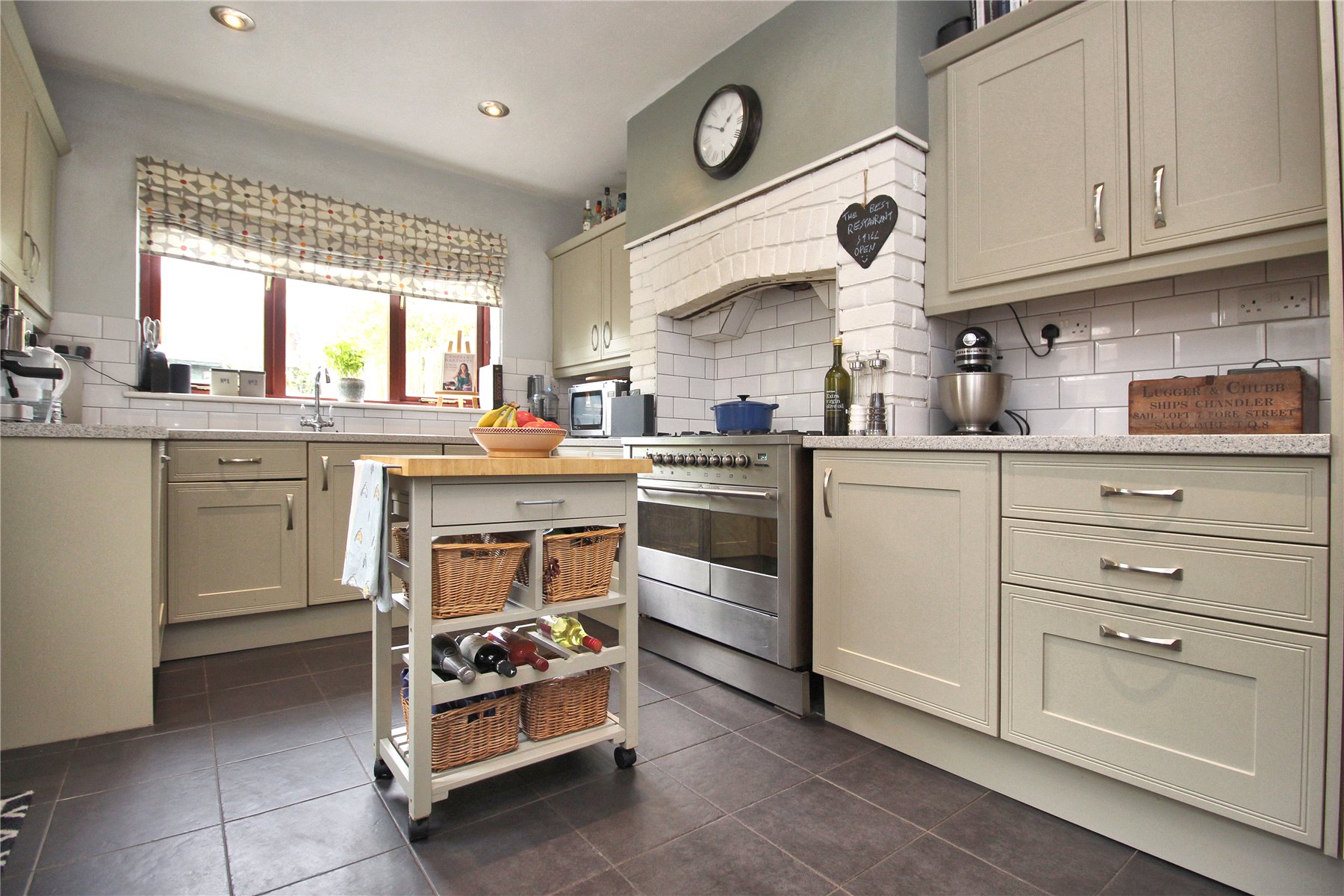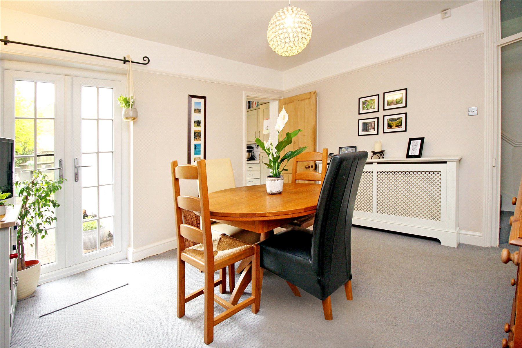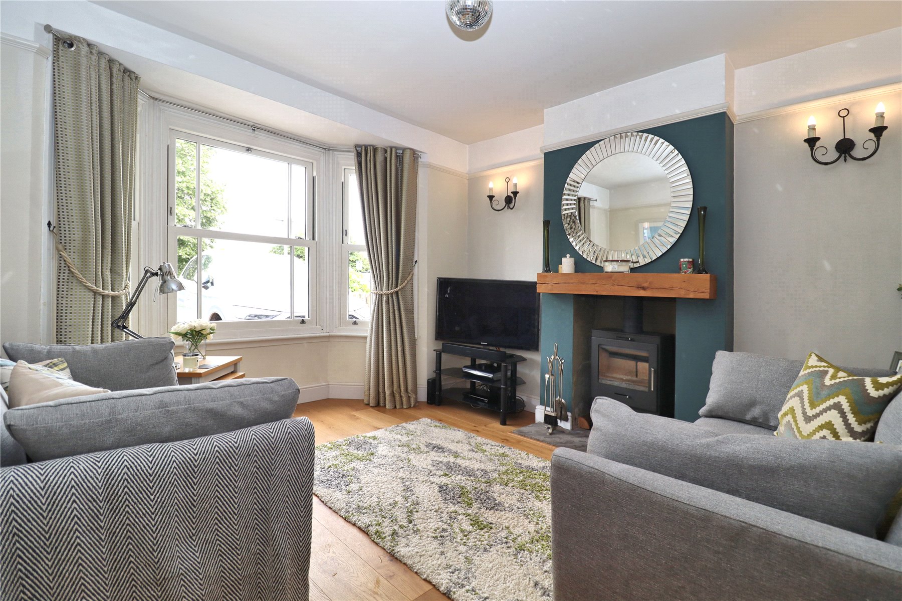The interior is superbly presented and features a classic living room with bay window, double glazed sash style window, wood burning stove, heavy timber mantel and picture rail. The dining room is rear aspect with double glazed multi paned doors to the rear. Beyond the dining room is an extended kitchen, which is comprehensively fitted with a range of base and eye level cupboards and matching drawers, incorporating range style cooker, integrated dishwasher and fridge/freezer, laminate work tops, part tiled walls, tiled floor, multiple ceiling downlighters and a stable door to the garden.