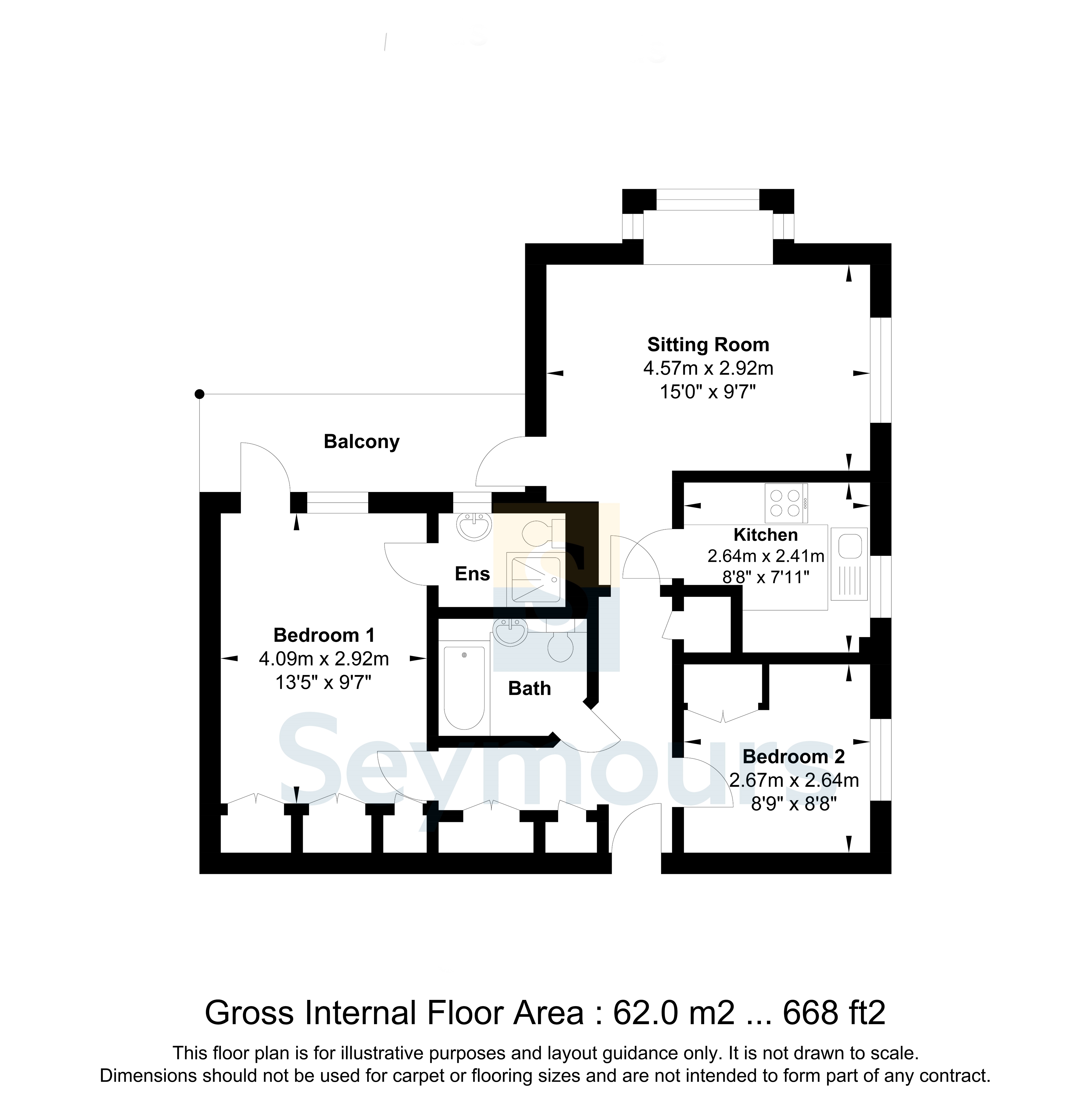 For sale with no onward chain the apartment features a front aspect living room, two bedrooms, two bath/shower rooms and a refitted kitchen.