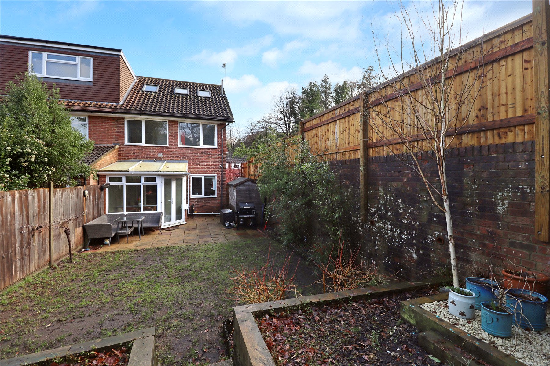Offered to the market in superb condition, this spacious loft-extended semi-detached family home has undergone extensive improvements within the last five years and is ideally located in a popular residential area. Further enhancing its appeal, planning permission has been granted for a two-storey rear extension, offering excellent potential to further increase the living accommodation.The ground floor features a generous living room and a stunning rear-aspect kitchen, renovated in 2021. The kitchen is fitted with a range of base and eye-level units with matching drawers, laminate worktops, a double oven, and space for white goods. Leading from the kitchen is a large conservatory with a recently replaced roof, providing access to the impressive three-tier landscaped rear garden. This outdoor space is a real highlight of the home and also benefits from side access.The first floor comprises two double bedrooms and a single bedroom, including one particularly spacious double. This level is further enhanced by a stylish three-piece family bathroom, fitted earlier this year. In 2019, the loft was expertly extended and architecturally designed to maximise natural light, creating an additional double bedroom and a modern shower room.Conveniently positioned within easy reach of Woking town centre and mainline station, as well as St Johns village, this property would make an excellent family home. Additional benefits include gas central heating to radiators, UPVC double-glazed windows, a garage in a nearby block, and a double driveway providing off-road parking.Woking offers a vibrant town centre with extensive shopping, dining, and leisure facilities, including The New Victoria Theatre & Cinema and The Lightbox Gallery. Recreational opportunities abound, with several renowned golf clubs nearby such as Woking Golf Club, West Hill, Hoebridge, Worplesdon, Chobham, and Foxhills. Scenic walks and outdoor activities can be enjoyed along the Basingstoke Canal, the River Wey, and the nearby Chobham Common National Nature Reserve.The area is well served by a range of highly regarded state and private schools, including Goldsworth Primary, Hoe Bridge, St Andrews, Greenfield, Halstead, Woking High School, St Dunstans, Hoe Valley, and St John the Baptist School.