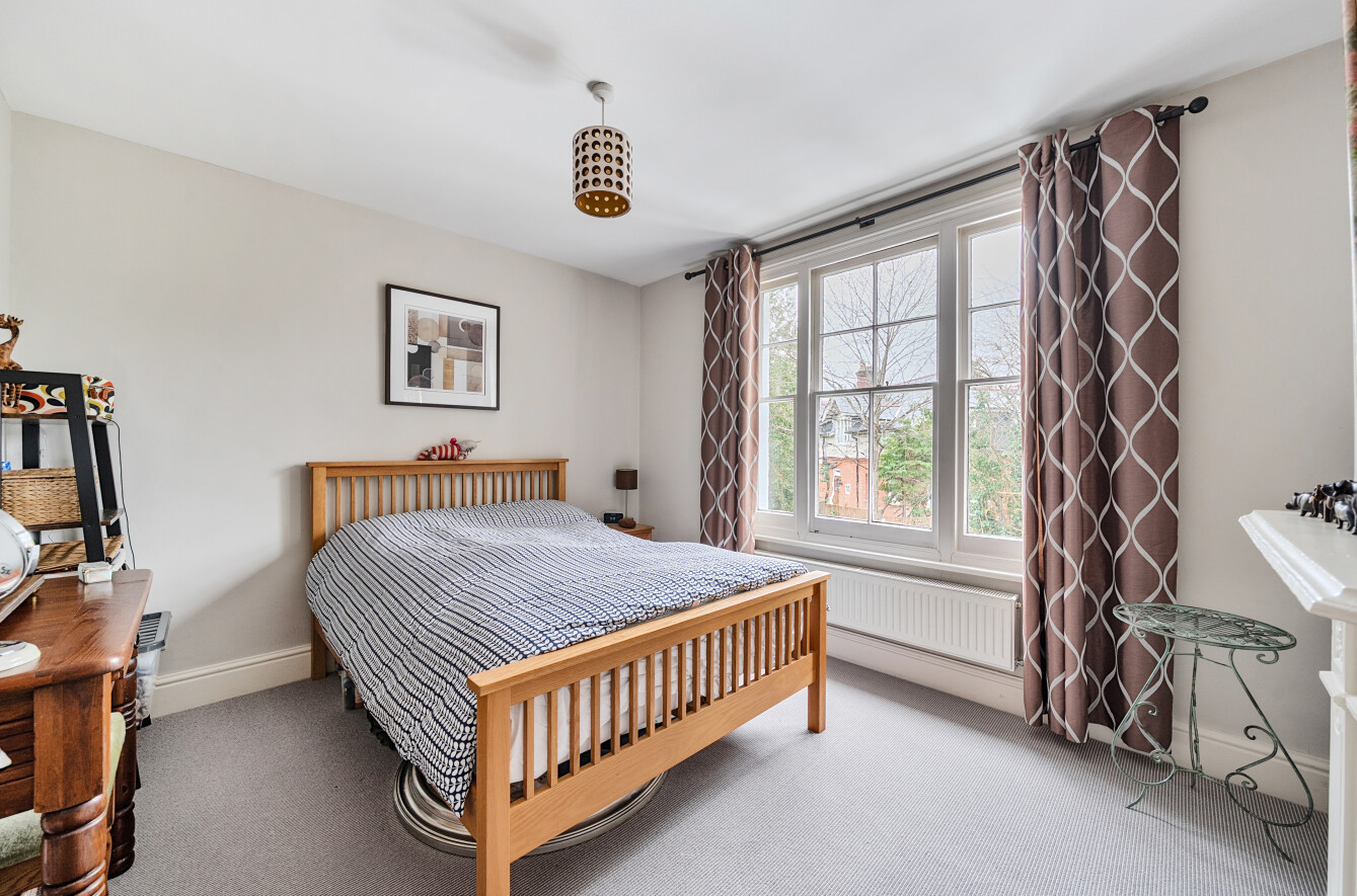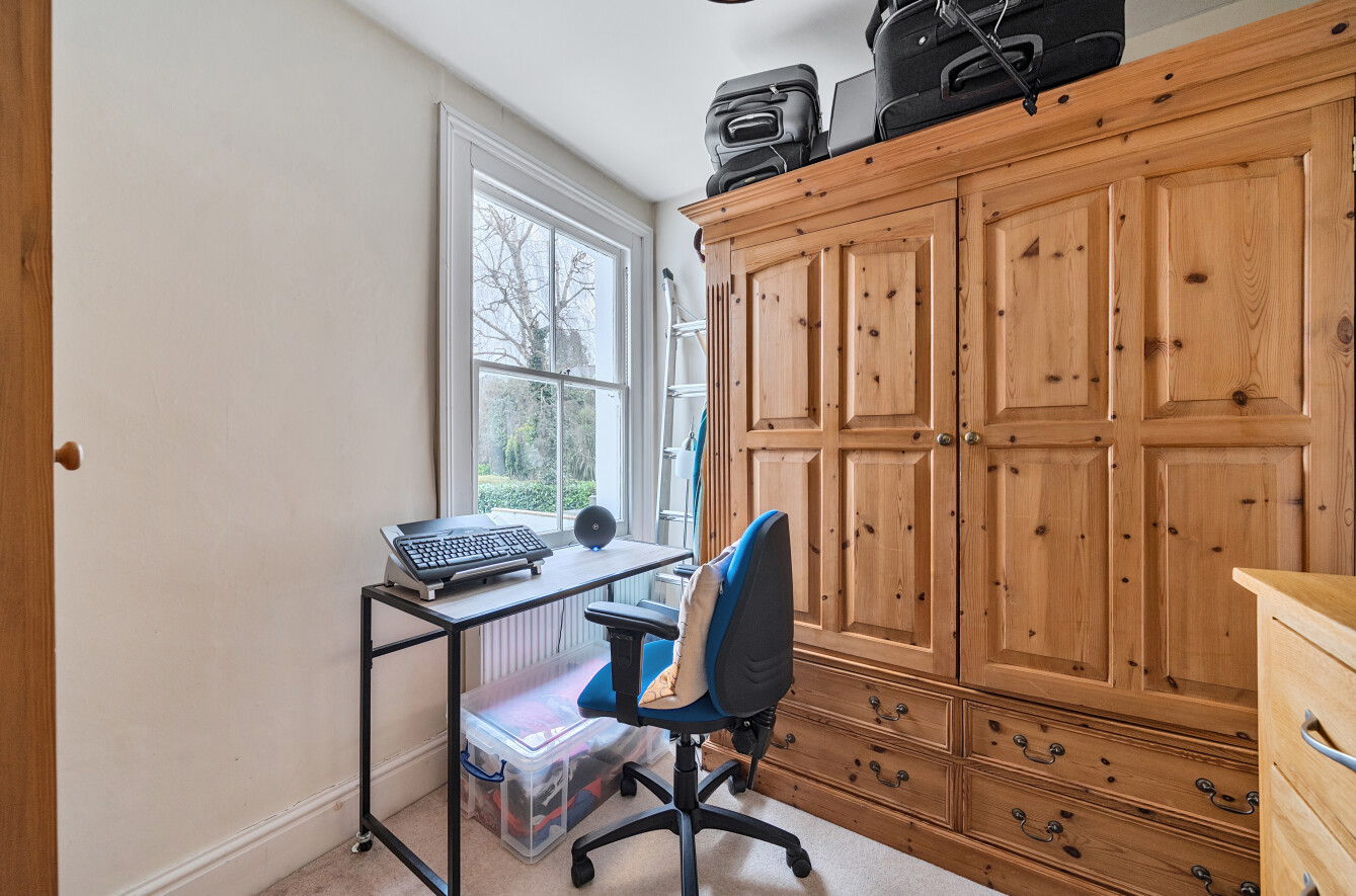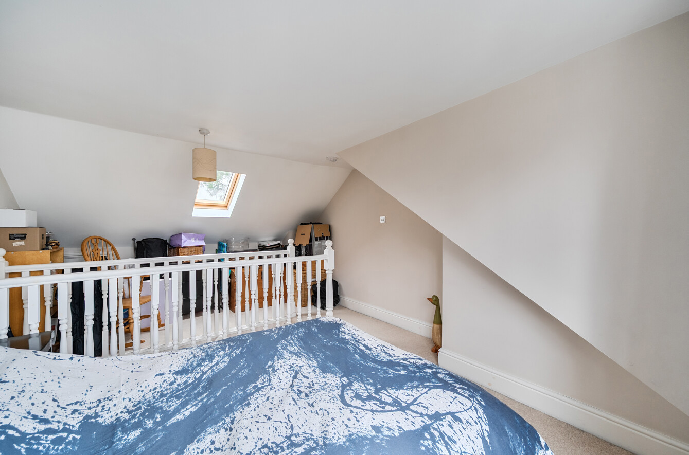 On the first floor are two well-presented bedrooms, including a generous principal bedroom, served by a stylish family bathroom. A further staircase leads to the loft conversion, which has been transformed into a stunning third bedroom. This impressive space enjoys excellent proportions, characterful rooflines and restricted head height areas that add charm while maximising the available accommodation.