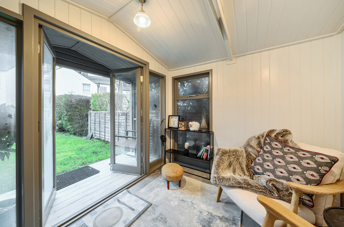 Externally, the property benefits from a garden featuring a separate outbuilding, ideal for use as a home office, studio or gym, providing valuable additional space away from the main house.