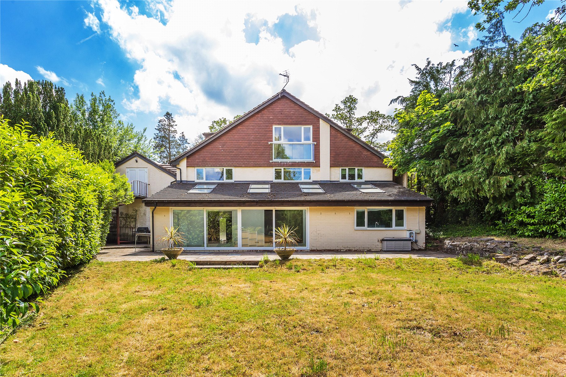 Sleek, stylish and spacious, behind an attractive traditional facade lies the contemporary brilliance of a sophisticated family home that offers a superb work/life balance. Situated around the picturesque scenery and ponds of Woking Golf Club on a prized no-through road in Hook Heath, this exceptional property demonstrates an attention to detail and a hugely versatile layout that includes a stunning kitchen/breakfast room, a family room with exposed timber beams and fireplace, along with both a ground and first floor study.