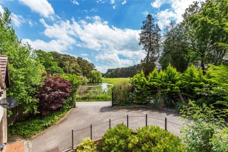 Set back from the pond and grounds of the golf club on an attractive and exclusive road that gives an enticing first impression, a sweeping driveway and detached garage host plenty of off-road parking, while well-planted shrubs and trees add colour and interest to the facade throughout the seasons.