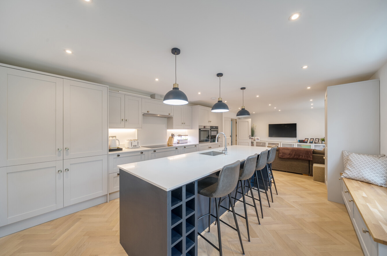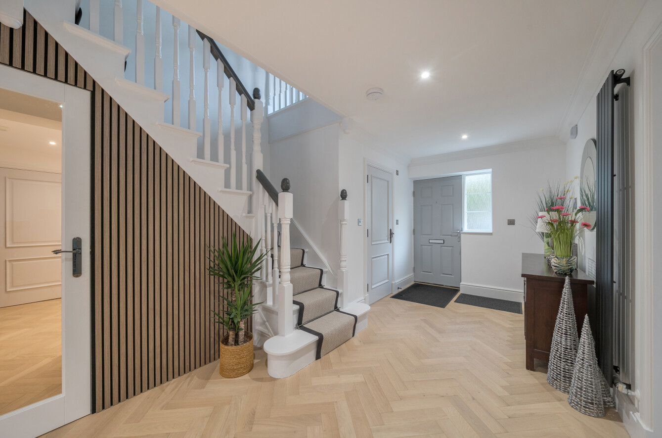 Set in a quiet cul-de-sac surrounded by picturesque rural scenery, this exceptional modern detached house has been refurbished from top to bottom to an outstanding standard. Offering an impressive 3,987 sq ft of beautifully presented living space, the property combines contemporary luxury with a countryside feel.Inside, youll find six spacious bedrooms, three elegant reception rooms, and four stylish bathrooms, all finished to a stunning specification with bright, modern interiors throughout. Every detail has been thoughtfully designed to create a warm and inviting family home.Outside, the property continues to impress with a well-maintained garden, large patio area, ample off-street parking, and a double garage. A superb outbuilding, complete with its own kitchen and shower room, offers excellent flexibility as a guest suite, home office, or leisure space.Set in a tranquil location yet within easy reach of local amenities and transport links, this home perfectly blends comfort, quality, and convenience. Early viewing is highly recommended to appreciate the impeccable finish and idyllic setting.