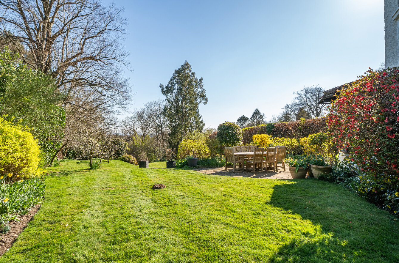 Outside, the property continues to impress with a lush garden, a sun-drenched patio, and a bright, airy garden roomperfect for both quiet relaxation and entertaining guests. The expansive 0.85-acre plot provides ample space for outdoor activities and leisure, while the practical amenities of off-street parking, a garage, and a versatile outbuilding add convenience and flexibility.