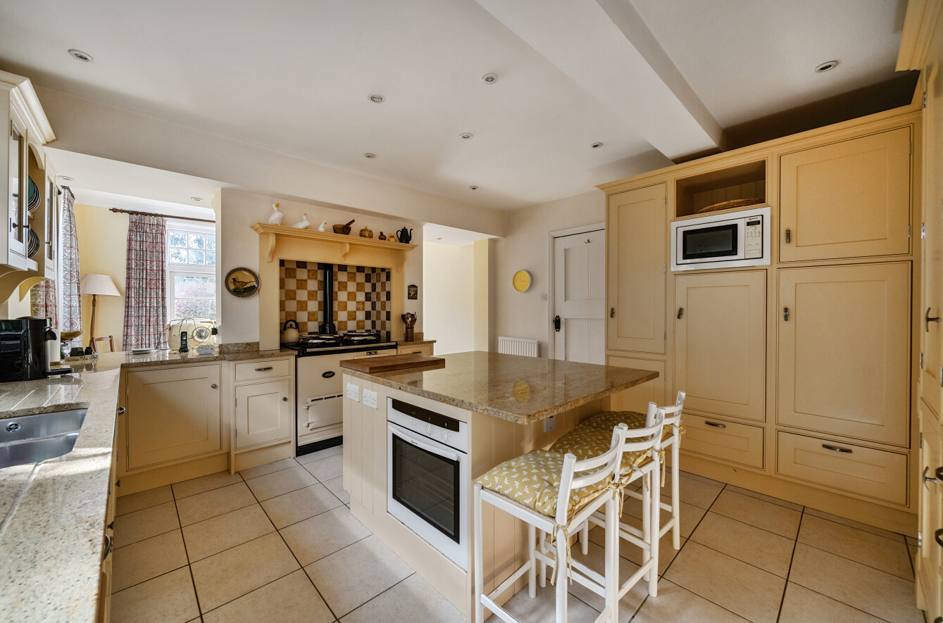 The interior is a delightful blend of traditional charm and expansive space, with original features complemented by stunning views to the rear. Natural light pours in through large windows, framing breathtaking vistas of the surrounding countryside and enhancing the home's welcoming atmosphere. Each room exudes warmth and character, creating a peaceful and homely ambiance throughout.
