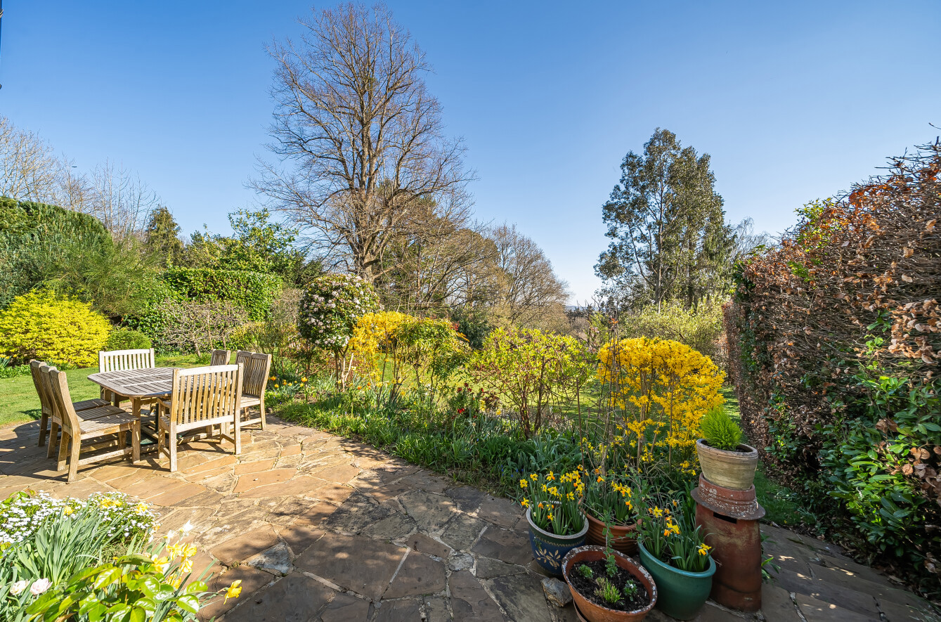 Tucked away within the peace and exclusivity of a leafy no-through lane, this detached Chobham village home opens onto s...