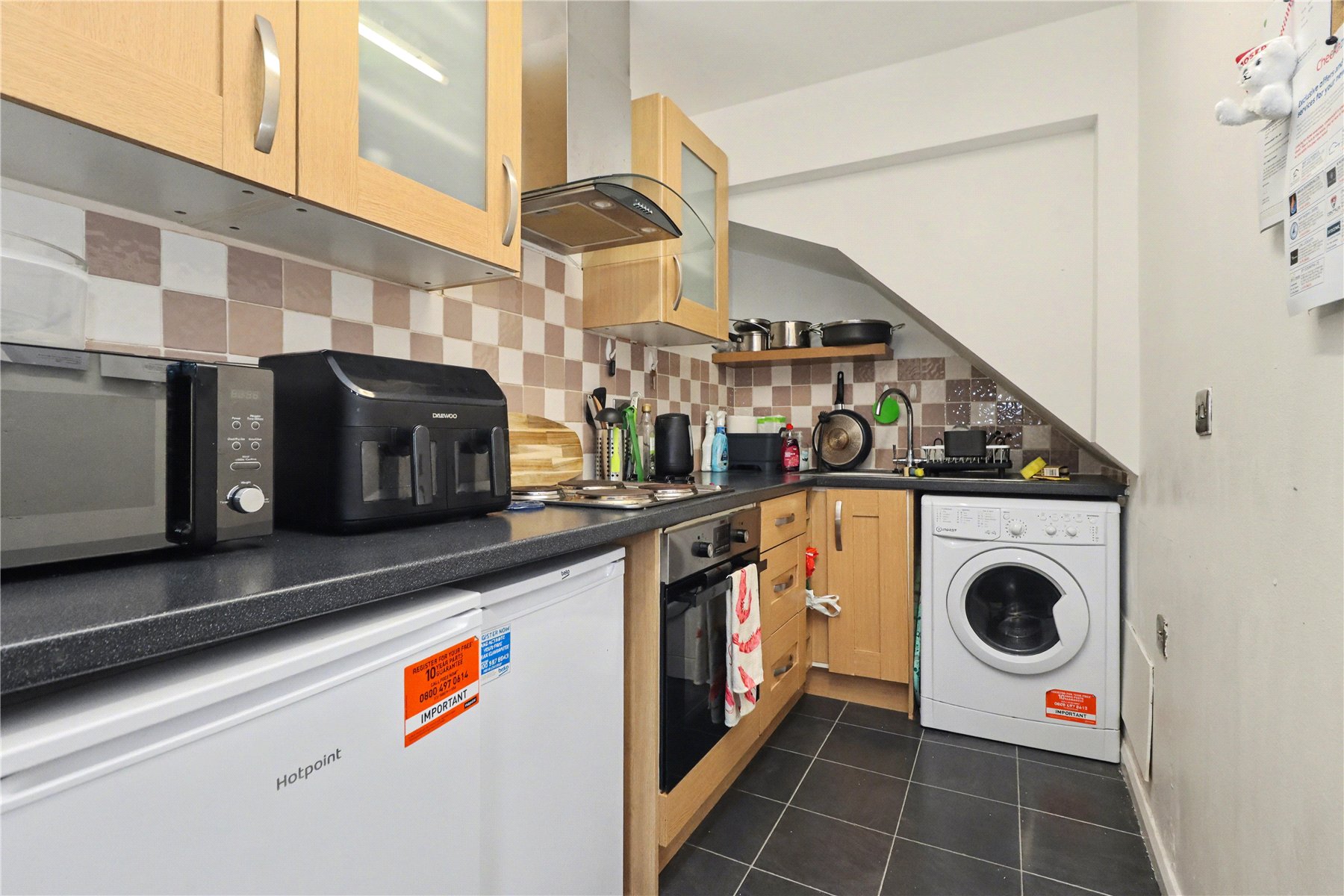 Situated within a popular development just a short walk from Woking town centre, the property features a bright and spacious reception room with impressive double-height ceiling, creating a real sense of space. The adjoining galley-style kitchen is fitted with an array of shaker-style units, offering practical and stylish storage.