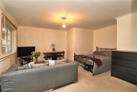 Well-presented accommodation includes a front aspect open plan living area with separate kitchen, double bedroom space and recently refurbished fully tiled shower room. The kitchen area has a comprehensive range of base and eye level cupboards and matching drawers, including various integrated appliances and space for additional appliances.